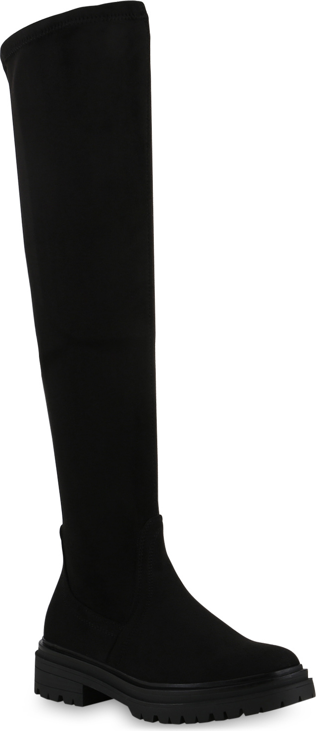 VAN HILL 840536 Overkneestiefel Damen Overknees Stiefel Plateau Vorne Profil-Sohle (schwarz)