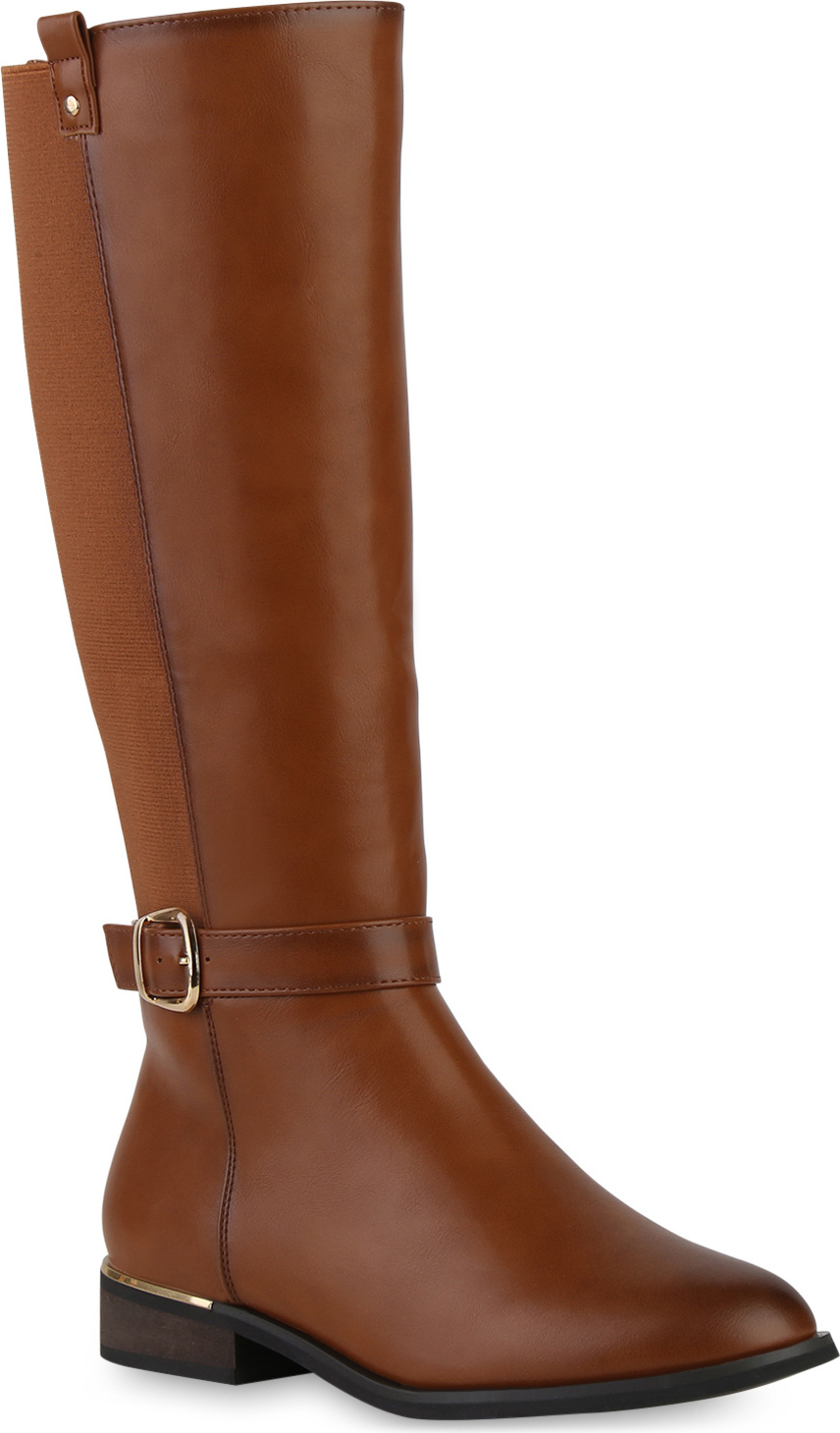 VAN HILL 840544 Stiefel Damen Leicht Gefütterte Reiterstiefel Schnallen Freizeit (braun)