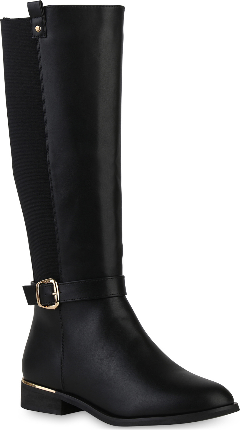 VAN HILL 840544 Stiefel Damen Leicht Gefütterte Reiterstiefel Schnallen Freizeit (schwarz)