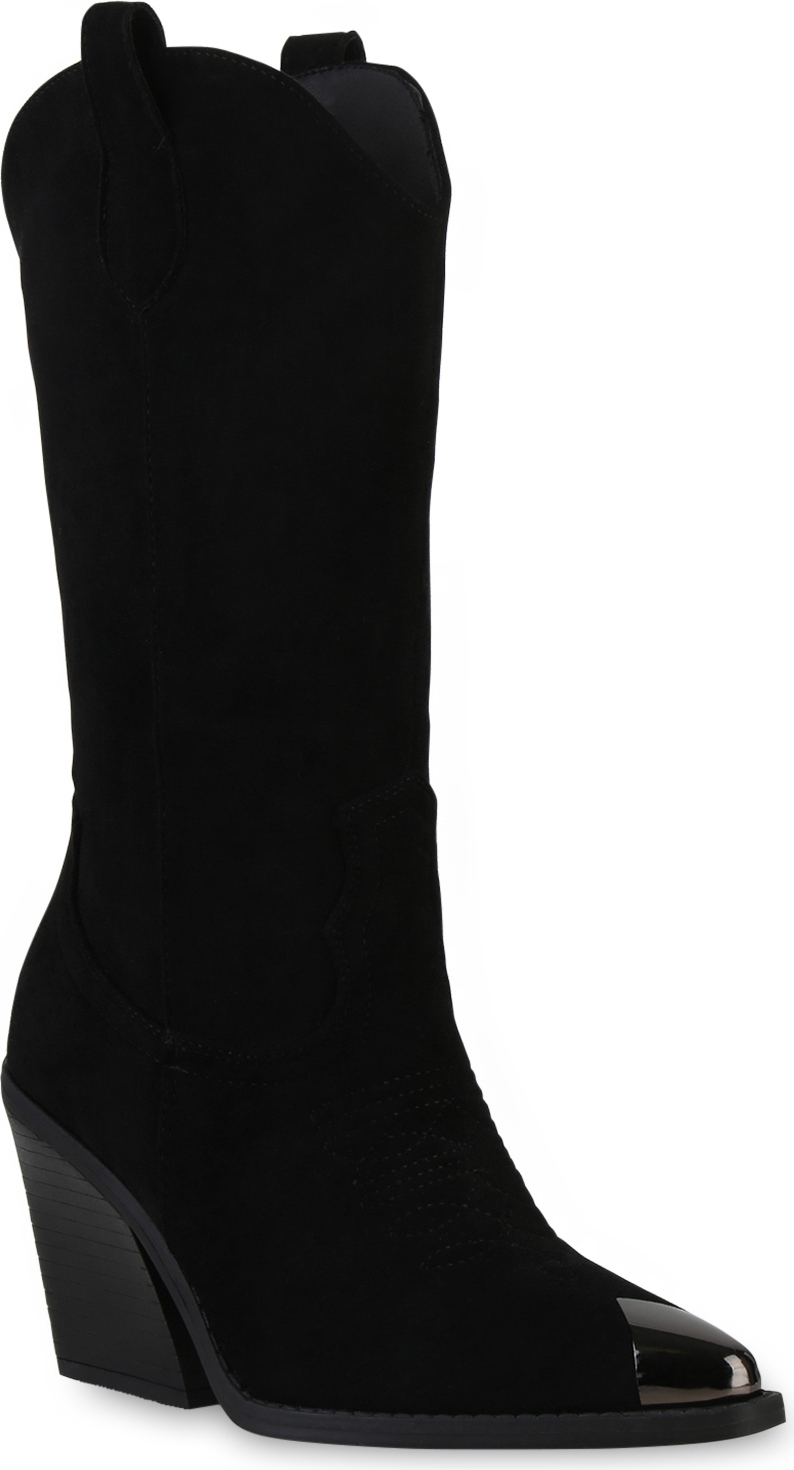 VAN HILL 840584 Cowboystiefel Damen Cowboystiefel Trichterabsatz Spitze Stickereien (schwarz)