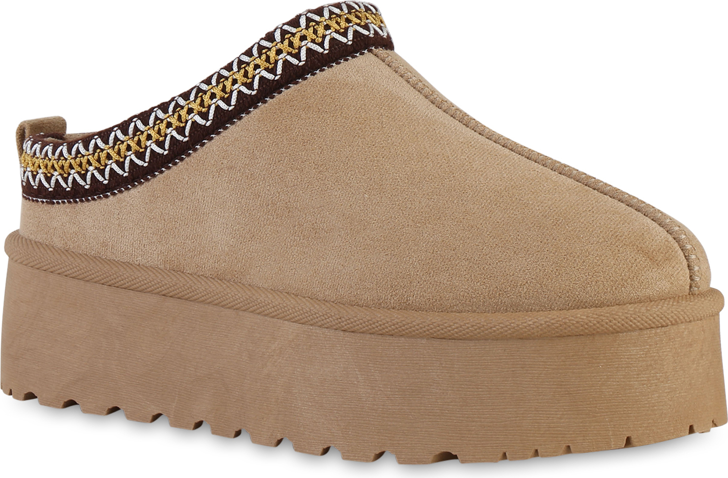 VAN HILL 840601 Hausschuh Damen Warm Gefütterte Pantoffeln Bequeme Plateau Prints (braun)