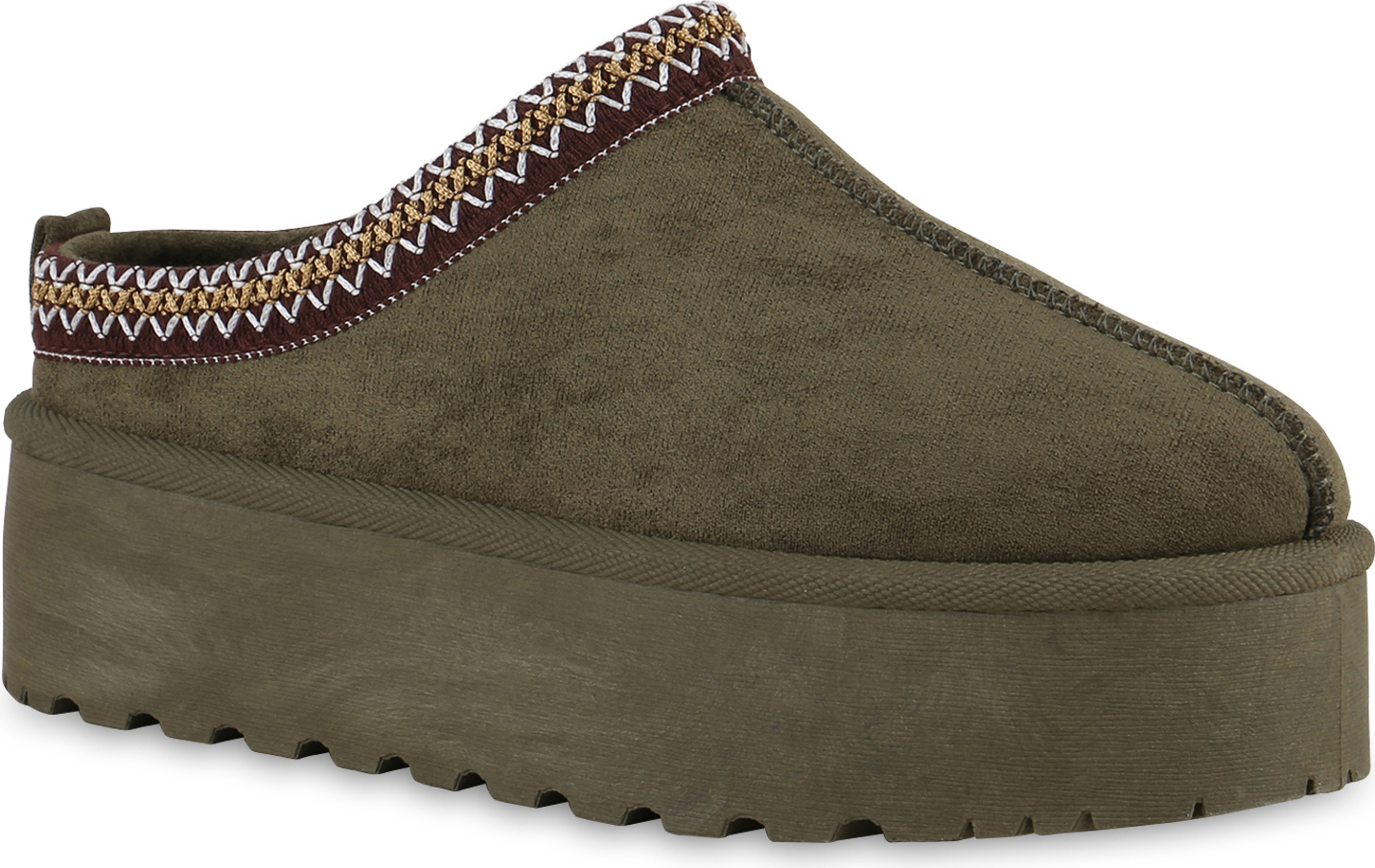 VAN HILL 840601 Hausschuh Damen Warm Gefütterte Pantoffeln Bequeme Plateau Prints (grün)
