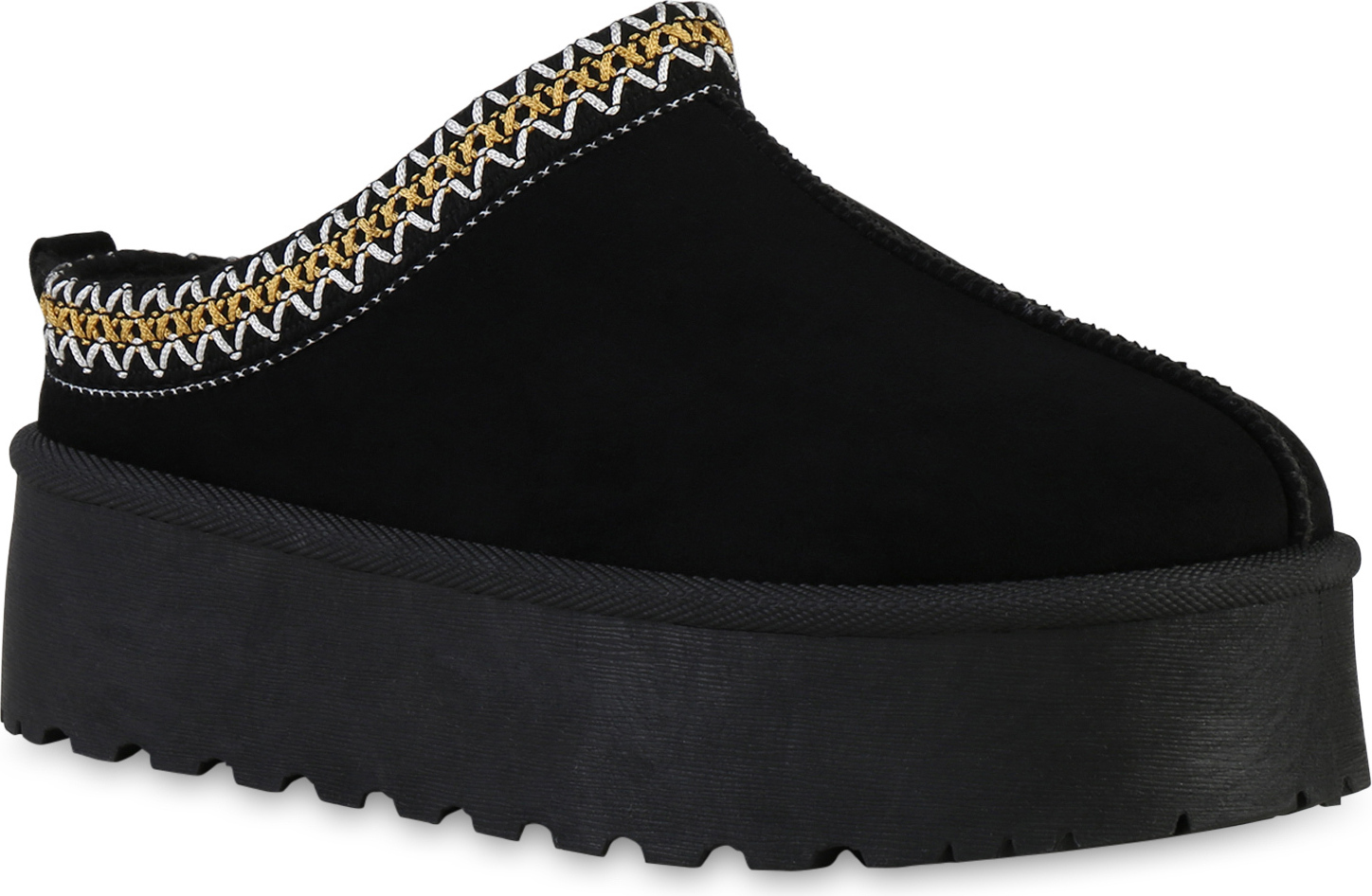 VAN HILL 840601 Hausschuh Damen Warm Gefütterte Pantoffeln Bequeme Plateau Prints (schwarz)