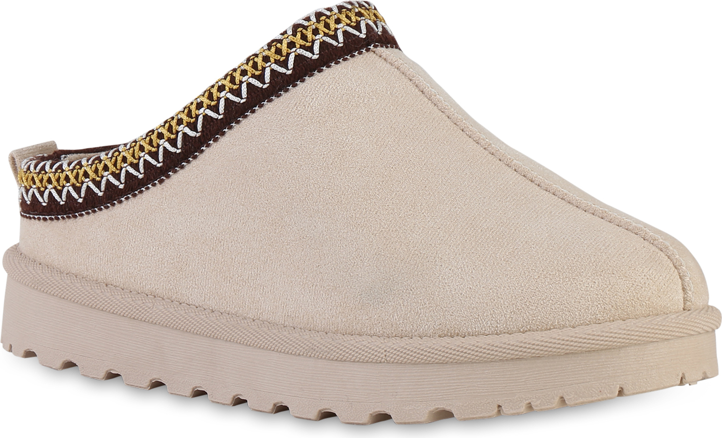 VAN HILL 840605 Hausschuh Damen Warm Gefütterte Pantoffeln Print Bequeme Profil-Sohle (beige)