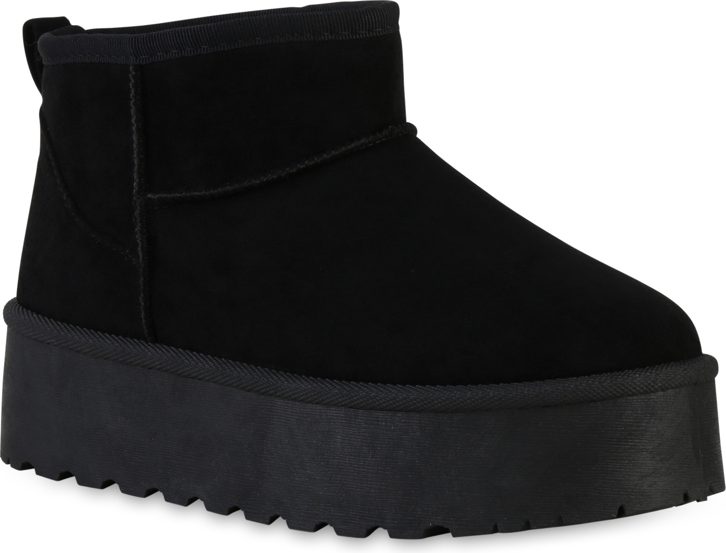 VAN HILL 840609 Plateaustiefelette Damen Warm Gefütterte Plateau Boots Profil-Sohle Winter (schwarz)
