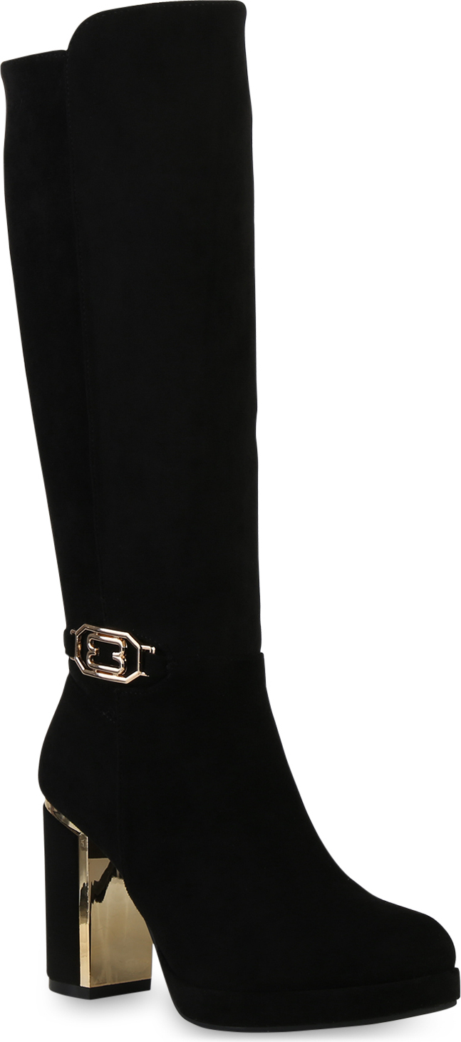 VAN HILL 840613 Stiefel Damen Leicht Gefütterte Klassische Stiefel Plateau Vorne (schwarz)