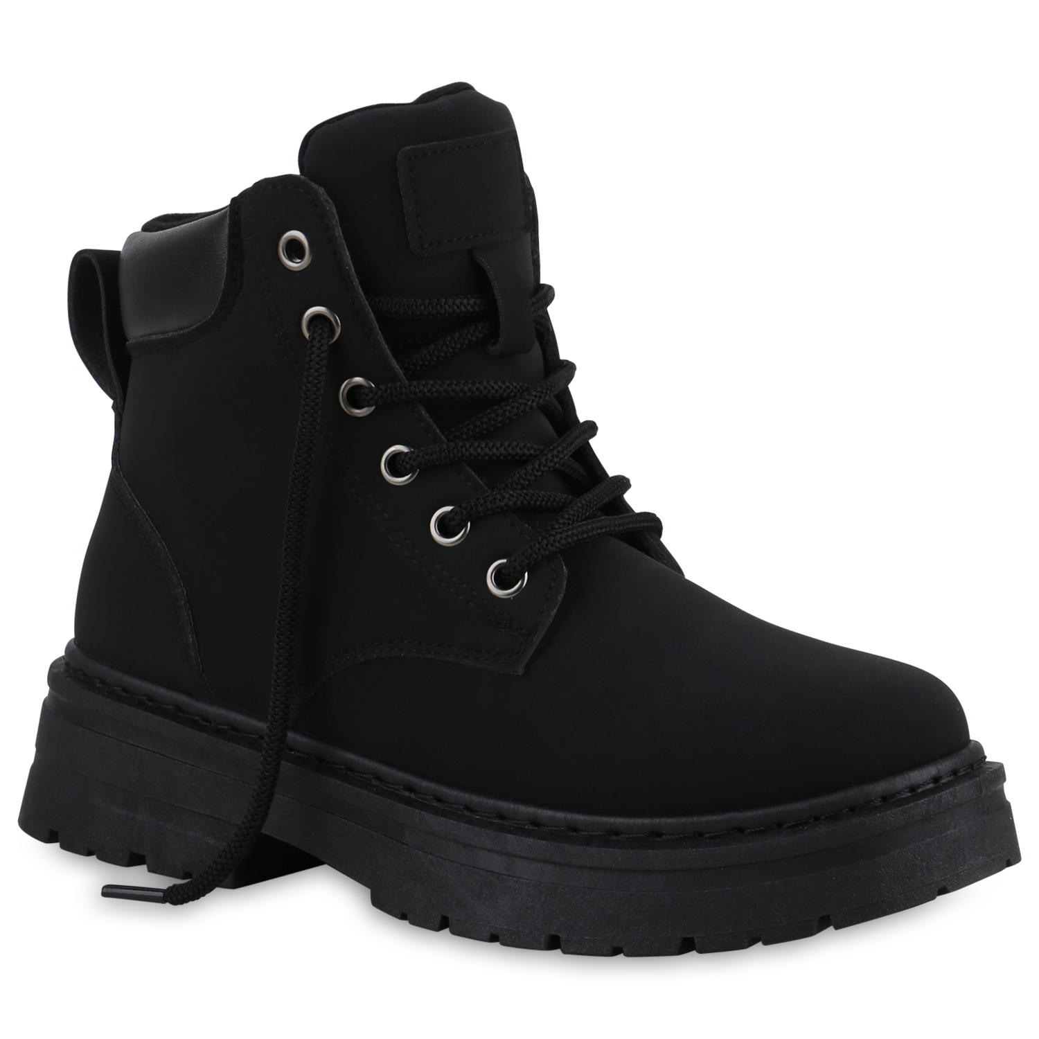 VAN HILL 840690 Stiefelette Damen Worker Boots Stiefeletten Bequeme Outdoor Plateau- (schwarz)