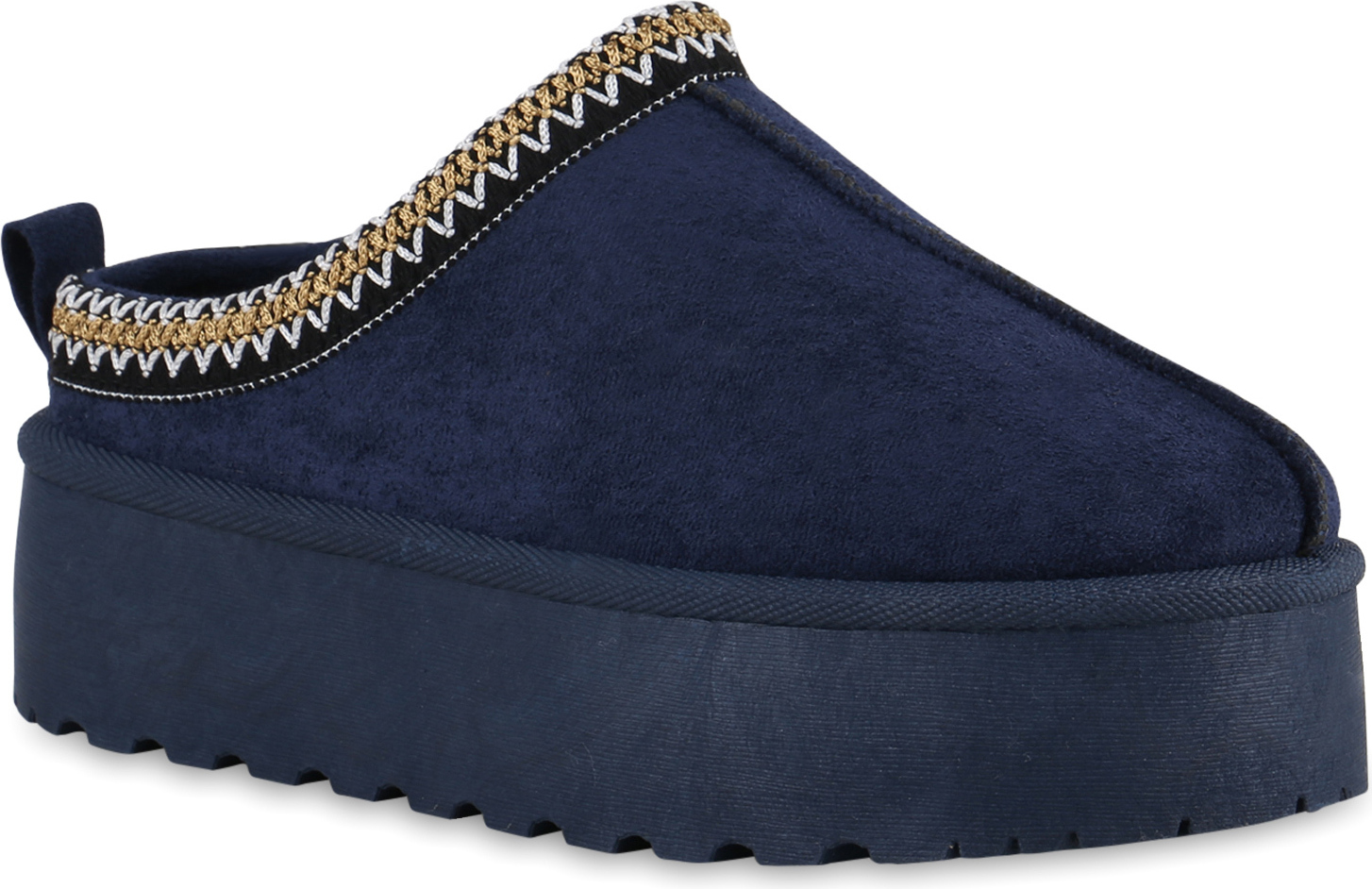 VAN HILL 840734 Hausschuh Damen Warm Gefütterte Pantoffeln Hausschuhe Bequeme Prints (blau)