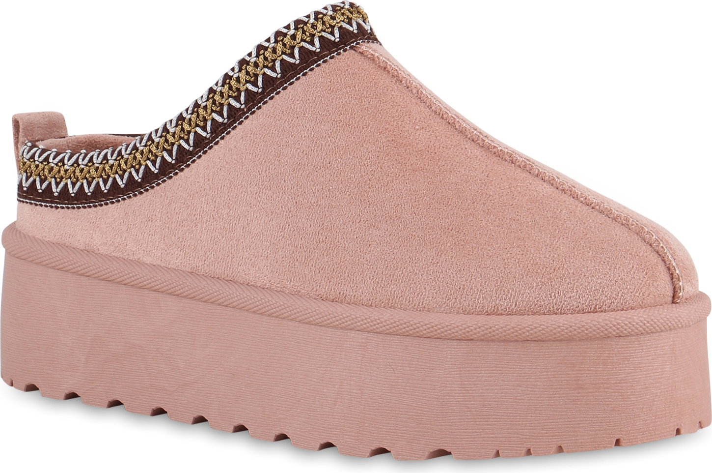 VAN HILL 840734 Hausschuh Damen Warm Gefütterte Pantoffeln Hausschuhe Bequeme Prints (rosa)