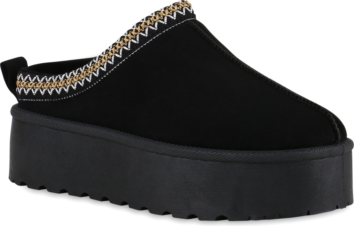 VAN HILL 840734 Hausschuh Damen Warm Gefütterte Pantoffeln Hausschuhe Bequeme Prints (schwarz)