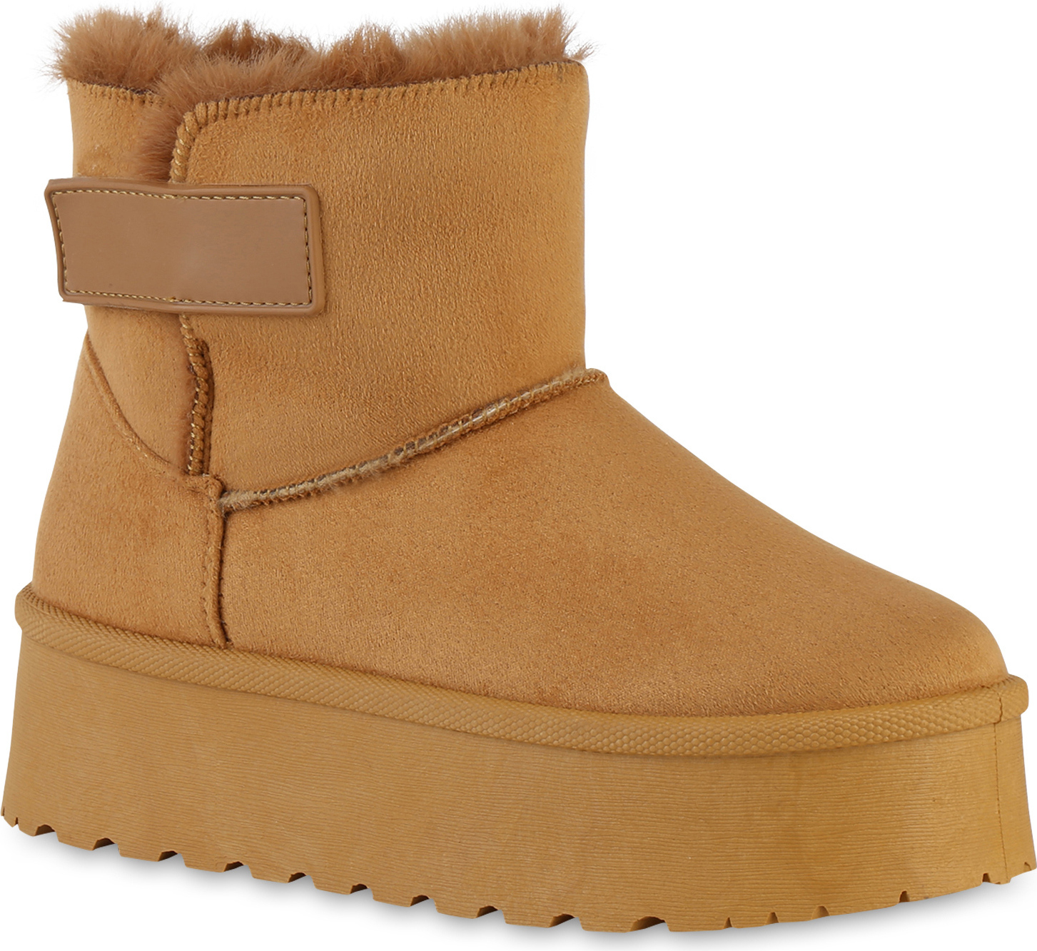 VAN HILL 840751 Plateaustiefelette Damen Warm Gefütterte Plateau Boots Bequeme Kunstfell (braun)