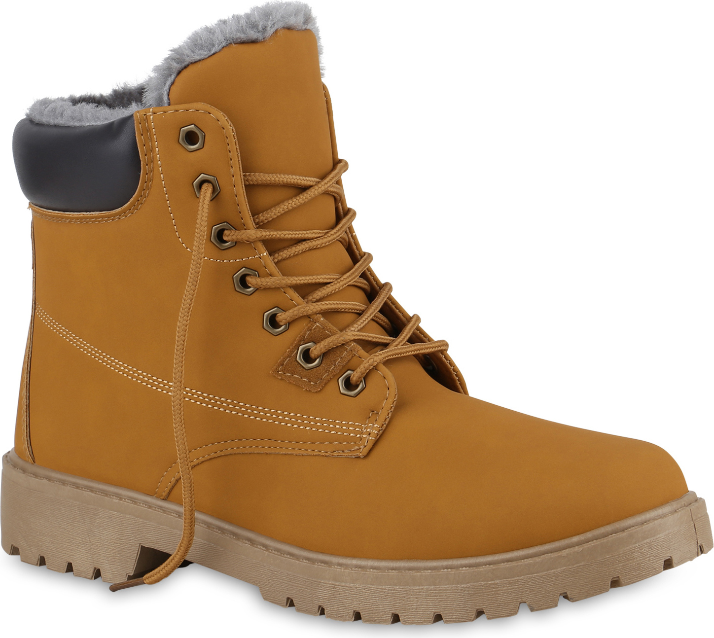 VAN HILL 840855 Bootsschuh Herren Warm Gefütterte Worker Boots Bequeme Profil-Sohle (braun)