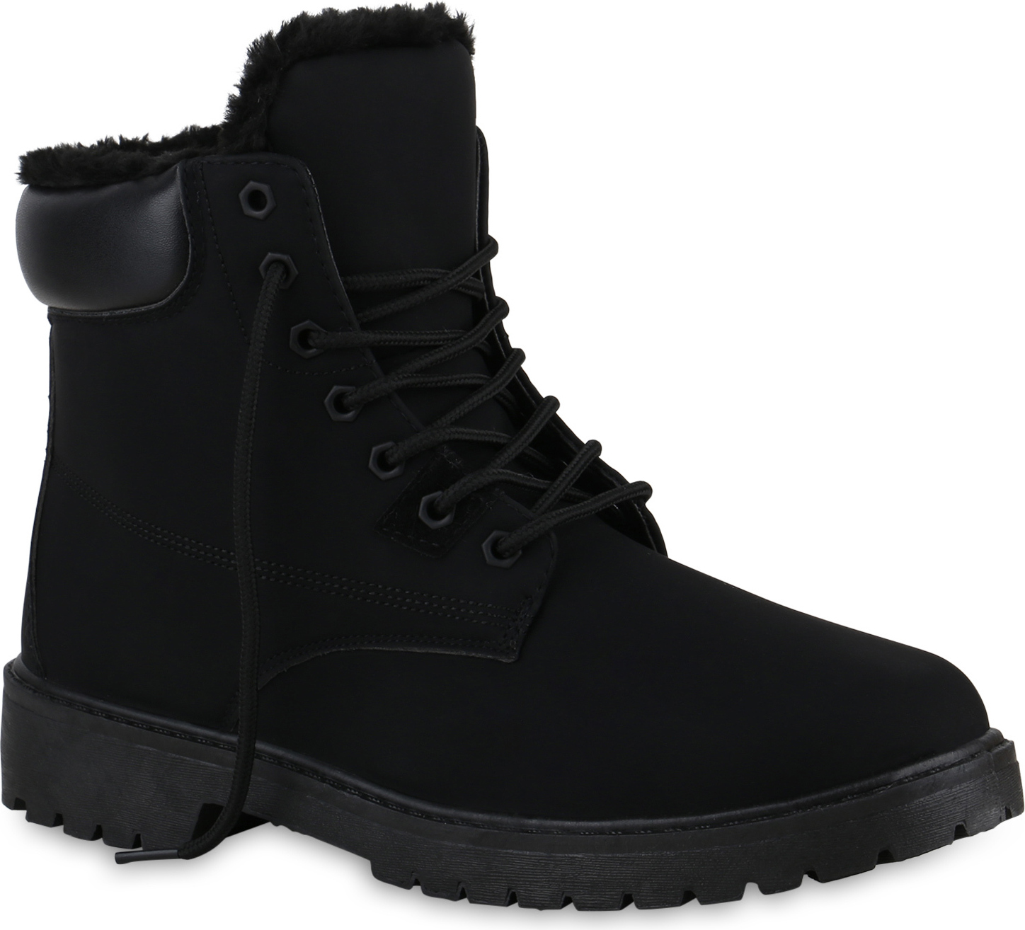 VAN HILL 840855 Bootsschuh Herren Warm Gefütterte Worker Boots Bequeme Profil-Sohle (schwarz)