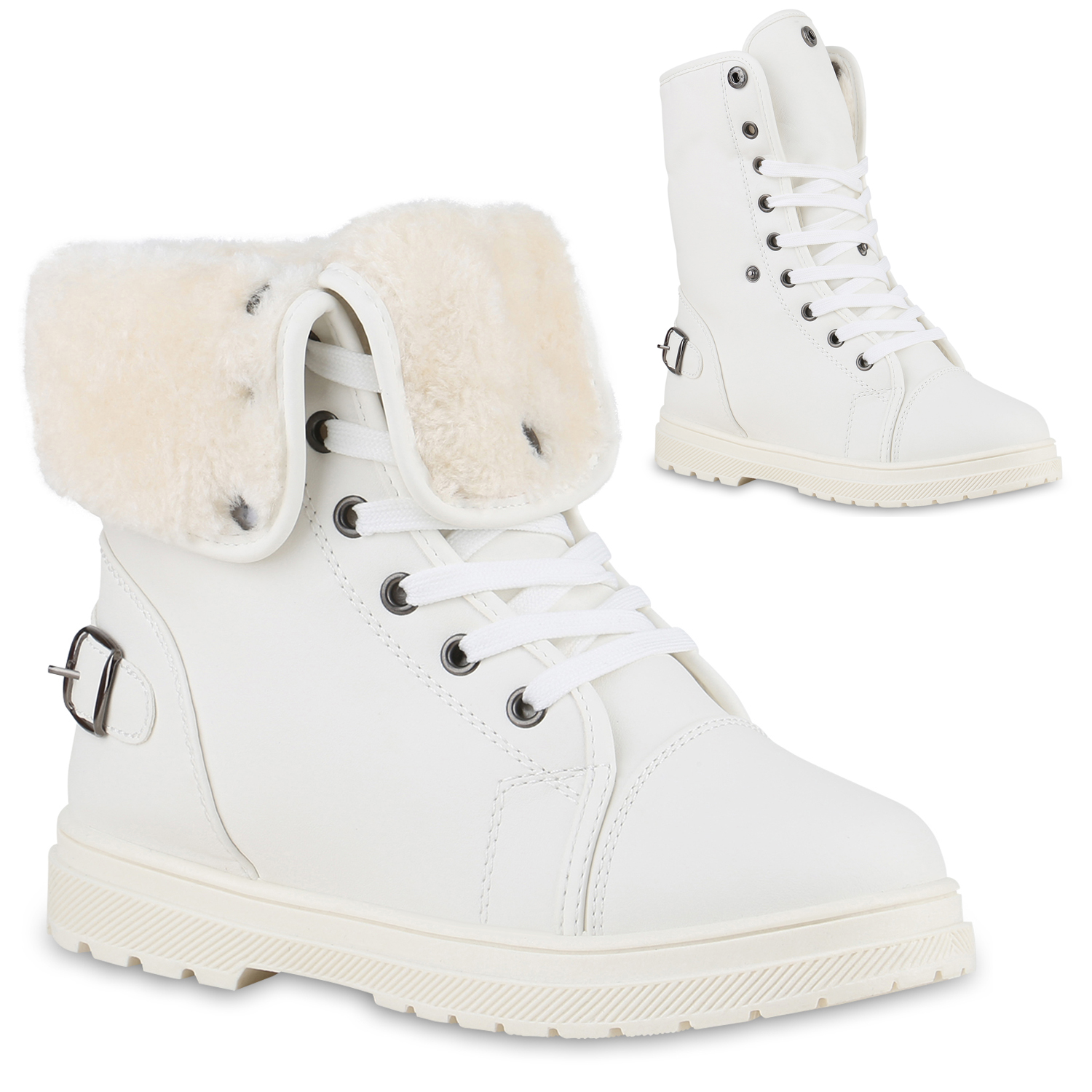 VAN HILL 840859 Sneaker Damen Warm Gefütterte Sneaker High Bequeme Schnallen Schnür- (weiß)