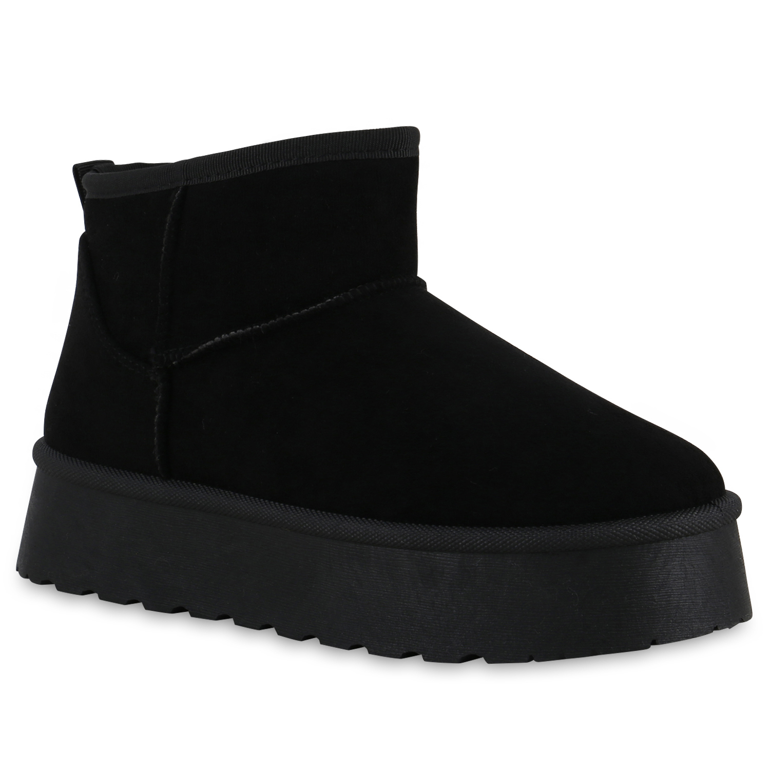 VAN HILL 840874 Winterstiefelette Damen Warm Gefütterte Winter Boots Bequeme Profil-Sohle (schwarz)