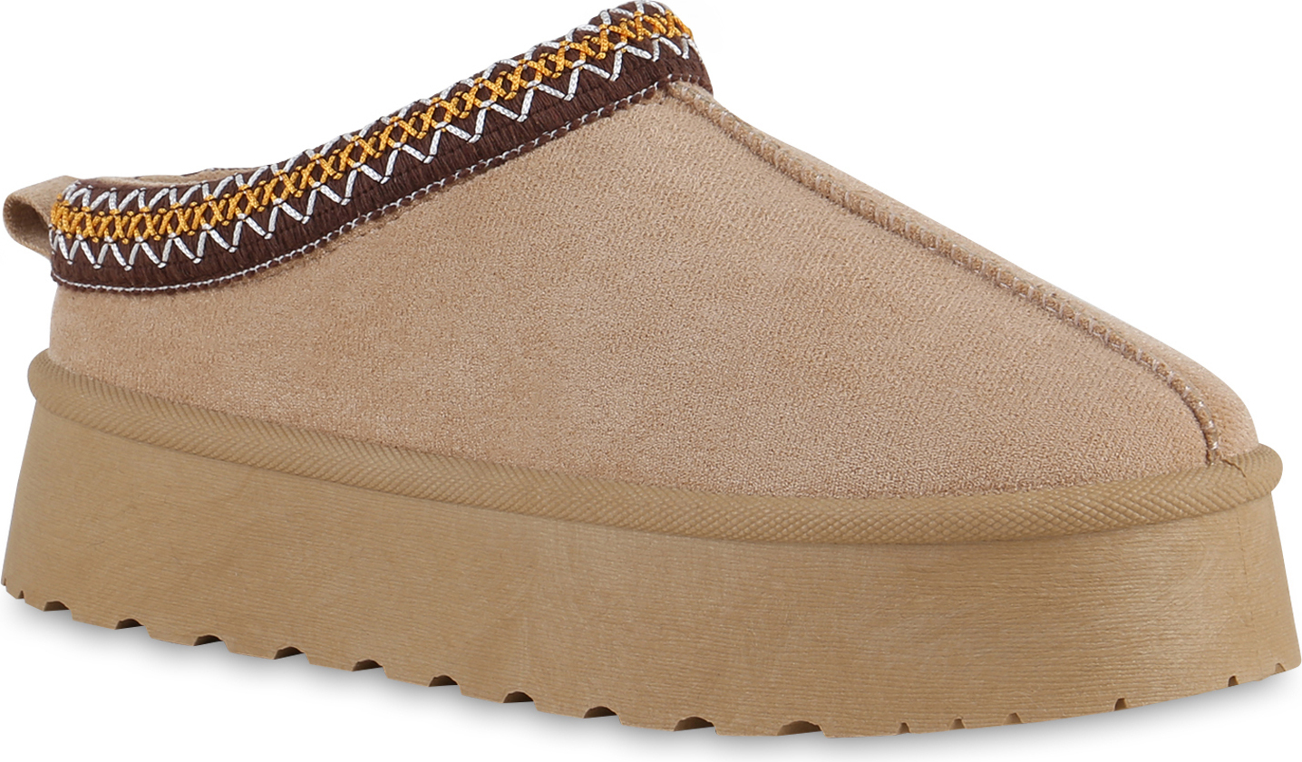 VAN HILL 840875 Hausschuh Damen Warm Gefütterte Pantoffeln Hausschuhe Bequeme Prints (beige)