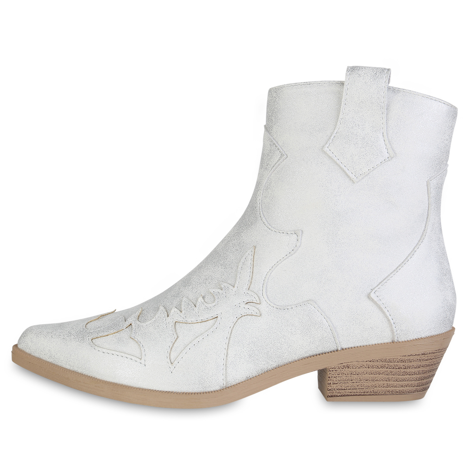 VAN HILL 840901 Cowboy Boots Damen Cowboy Boots Stiefeletten Spitze Holzoptikabsatz (silber)