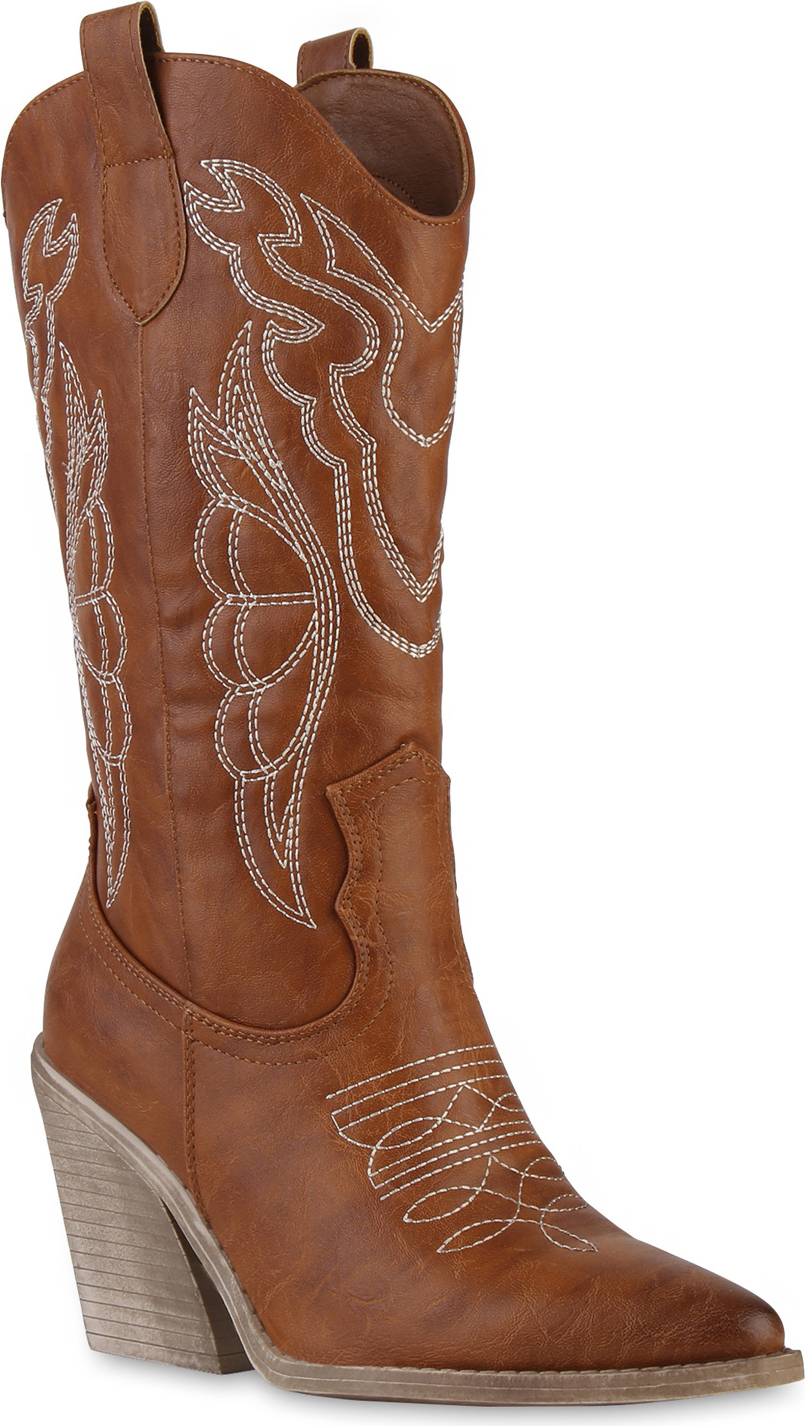 VAN HILL 840906 Cowboystiefel Damen Cowboystiefel Stiefel Spitze Stickereien Western (braun)
