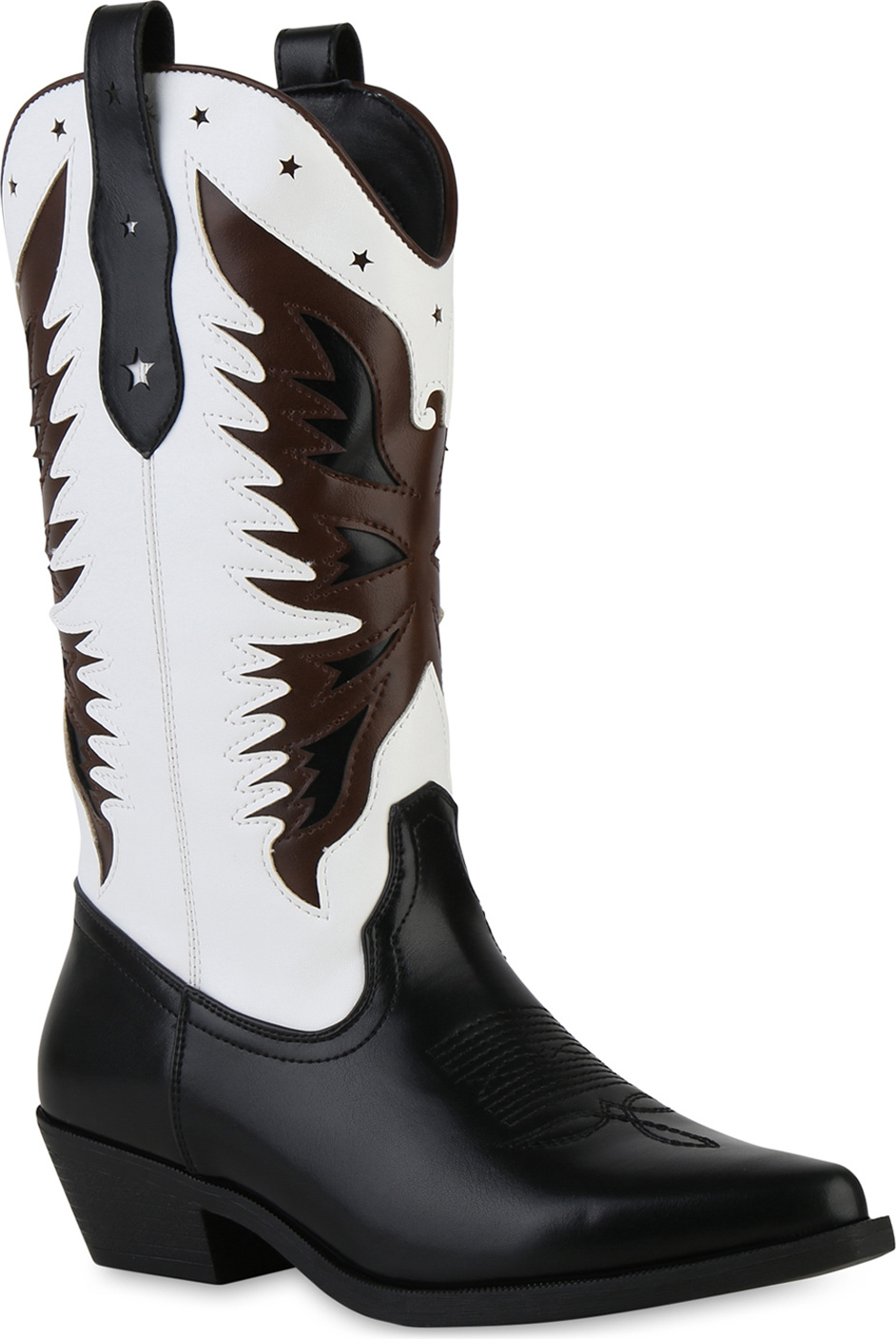 VAN HILL 841113 Cowboystiefel Damen Cowboystiefel Stiefel Spitze Holzoptikabsatz Western (bunt/schwarz)