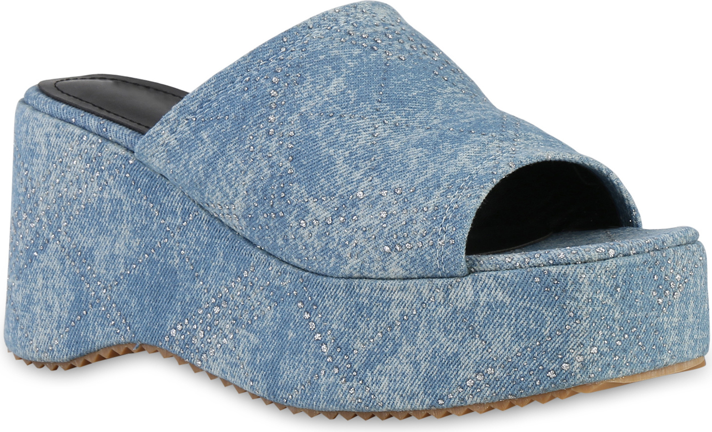 VAN HILL 841124 Plateausandaletten Damen Plateau Sandaletten Freizeit Profil-Sohle Plateau- (blau)