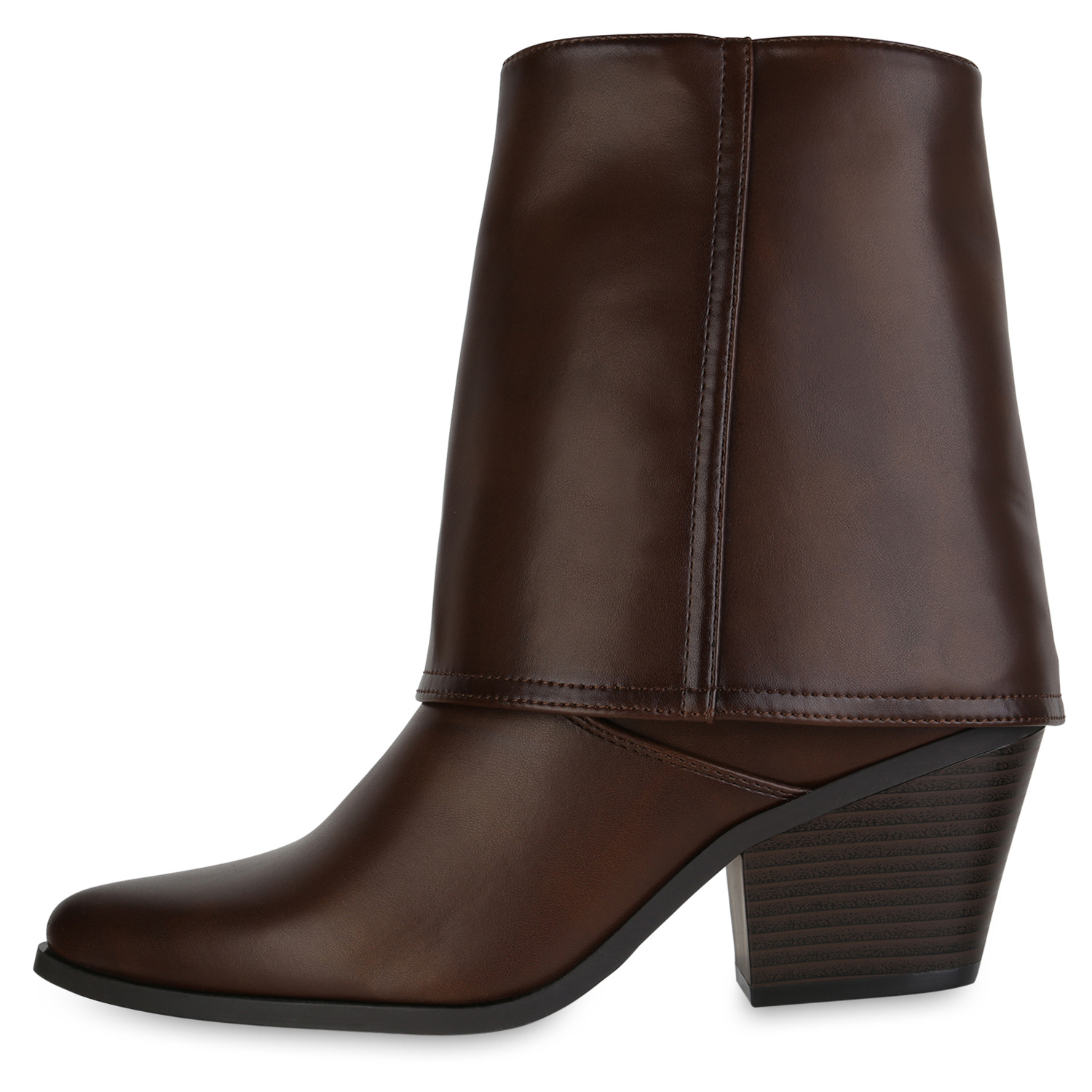 VAN HILL 841322 Cowboy Boots Damen Leicht Gefütterte Cowboy Boots Stiefeletten Spitze (braun)