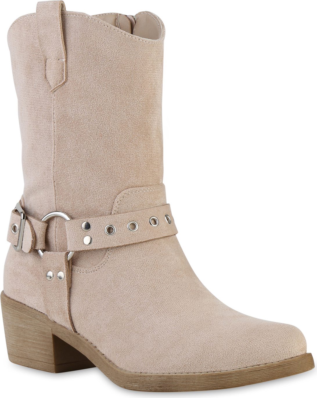 VAN HILL 841326 Cowboy Boots Damen Leicht Gefütterte Cowboy Boots Stiefeletten Schnallen (beige)