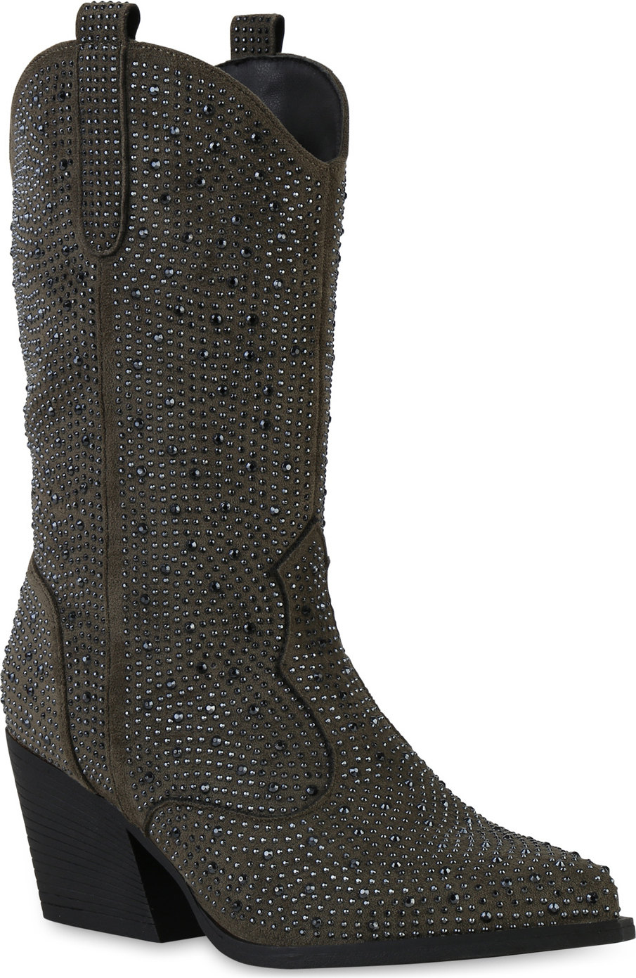 VAN HILL 841327 Cowboystiefel Damen Leicht Gefütterte Cowboystiefel Stiefel Spitze Strass (grün)