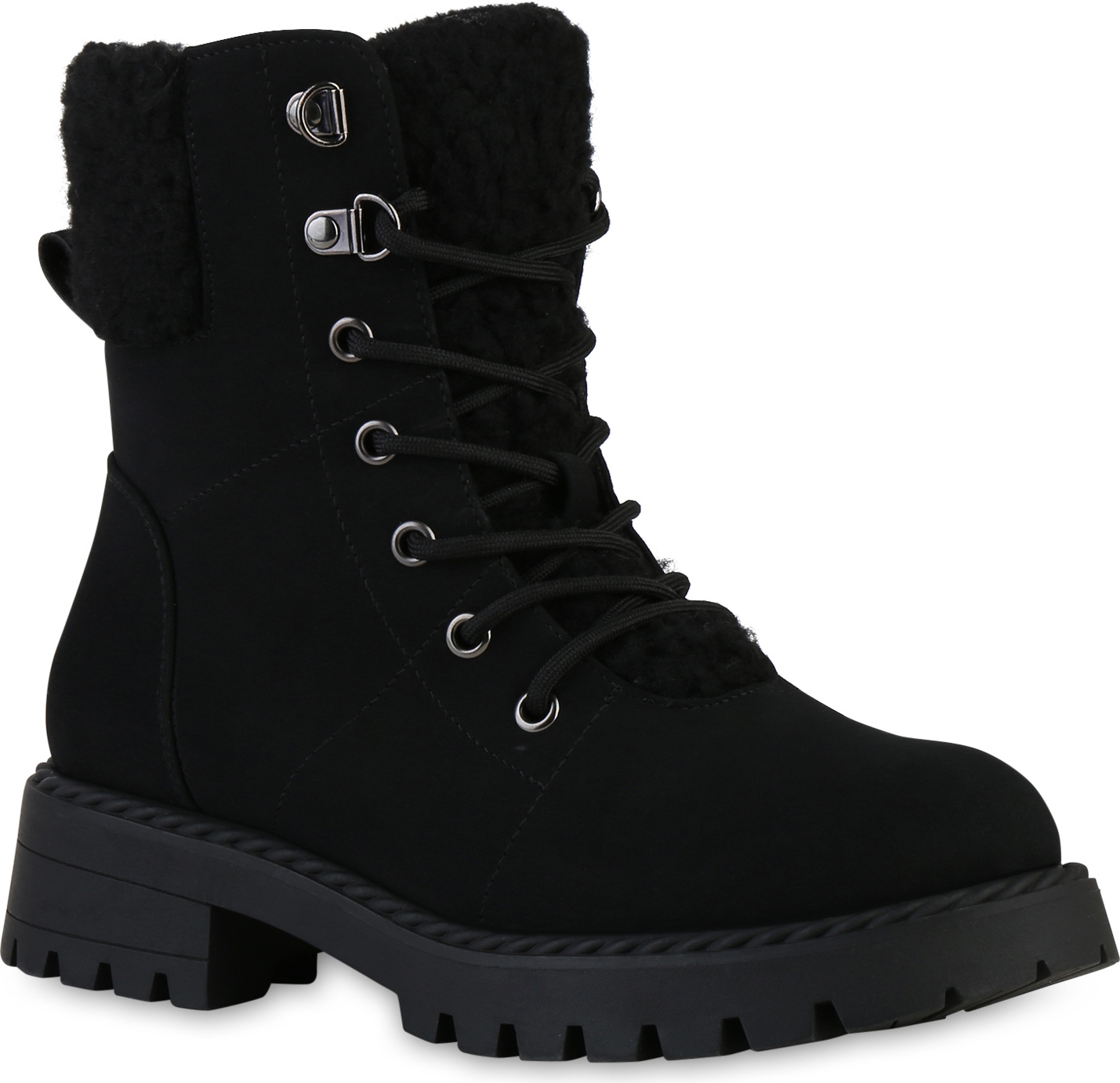 VAN HILL 841345 Schnürstiefelette Damen Gefütterte Schnürstiefeletten Bequem Kunstfell Winter (schwarz)