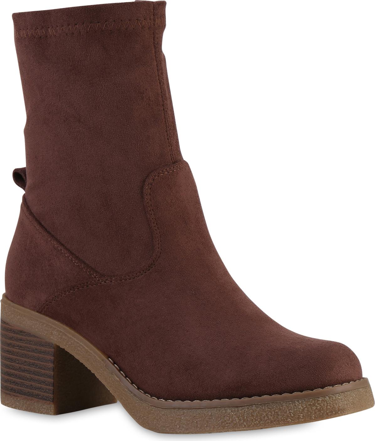 VAN HILL 841347 Stiefelette Damen Klassische Stiefeletten Holzoptikabsatz Herbst (braun)