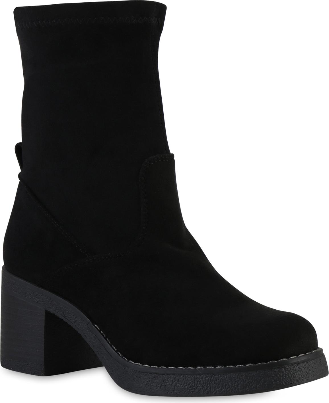 VAN HILL 841347 Stiefelette Damen Klassische Stiefeletten Holzoptikabsatz Herbst (schwarz)