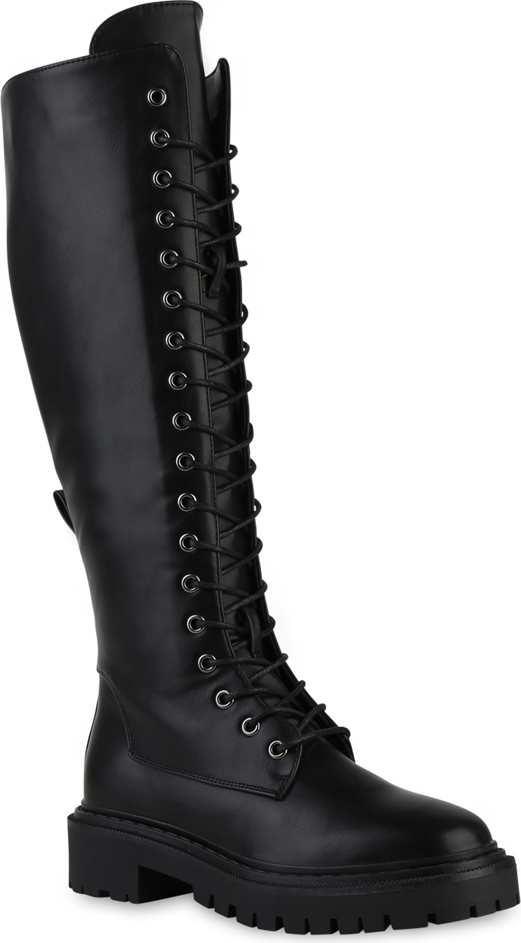 VAN HILL 841360 Schnürstiefel Damen Leicht Gefütterte Schnürstiefel Stiefel Profil-Sohle (schwarz)