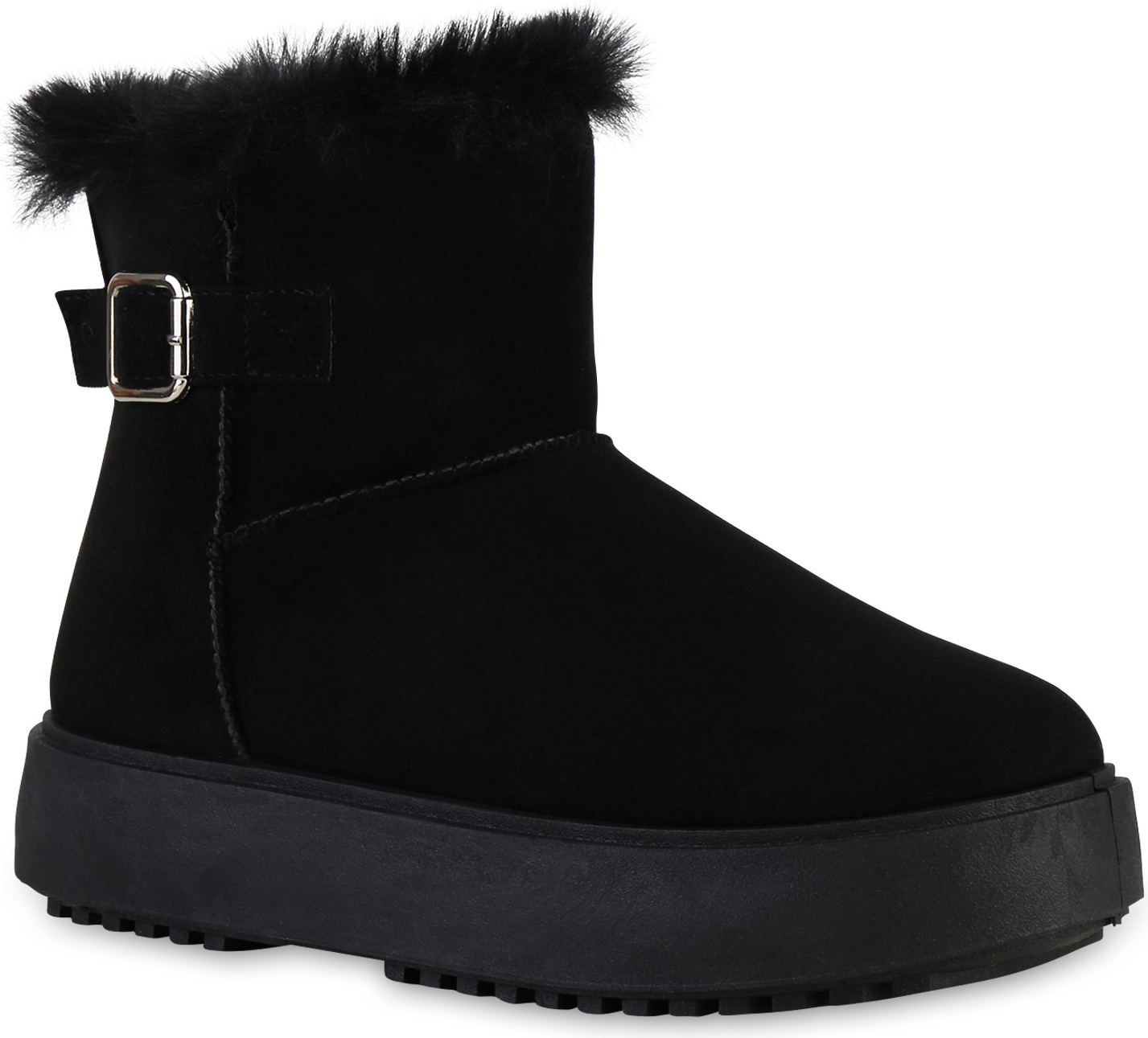 VAN HILL 841363 Winterstiefelette Damen Warm Gefütterte Winter Boots Stiefeletten Schnallen (schwarz)