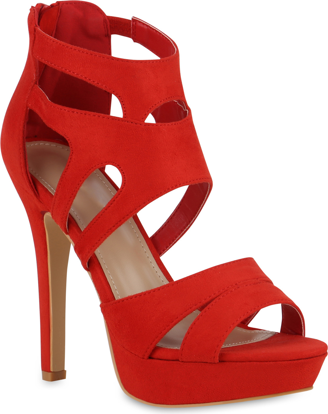 VAN HILL 841366 High-Heel-Sandalette Damen High Heels Sandalette Stiletto Cut-outs Party Plateau- (rot)