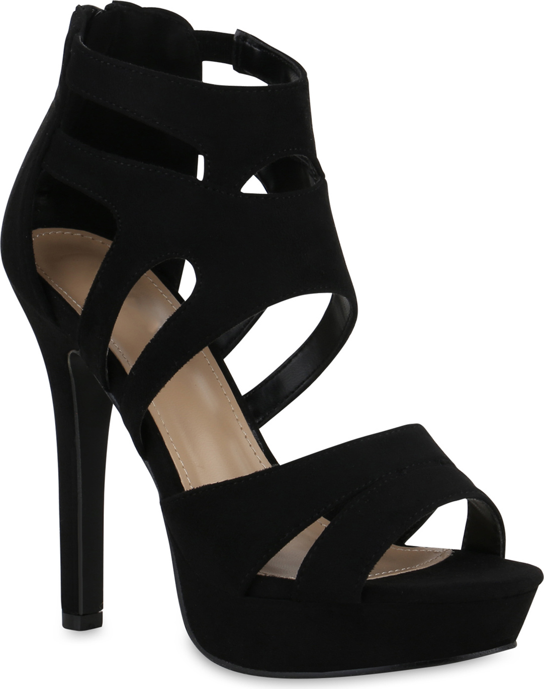 VAN HILL 841366 High-Heel-Sandalette Damen High Heels Sandalette Stiletto Cut-outs Party Plateau- (schwarz)