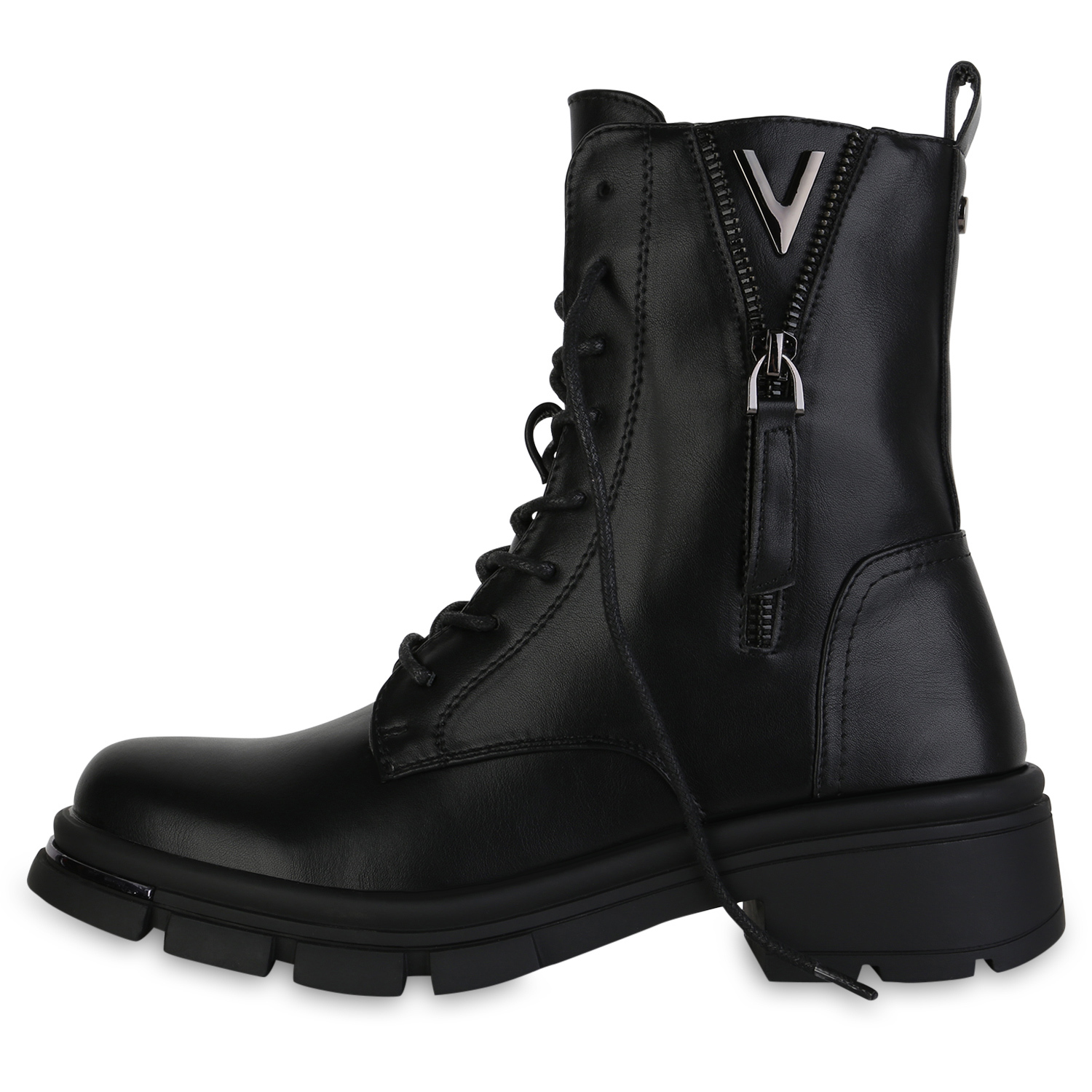VAN HILL 841392 Schnürstiefelette Damen Leicht Gefüttert Schnürstiefeletten Stiefeletten Lack (schwarz)