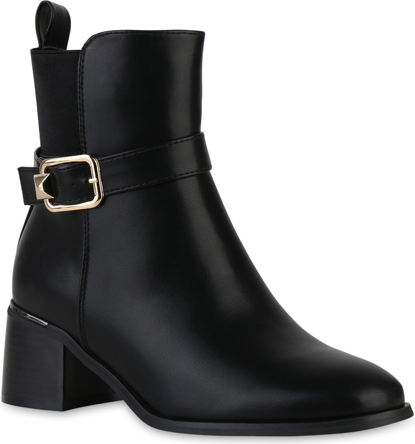 VAN HILL 841394 Bikerboots Damen Biker Boots Stiefeletten Schnallen Holzoptikabsatz (schwarz)