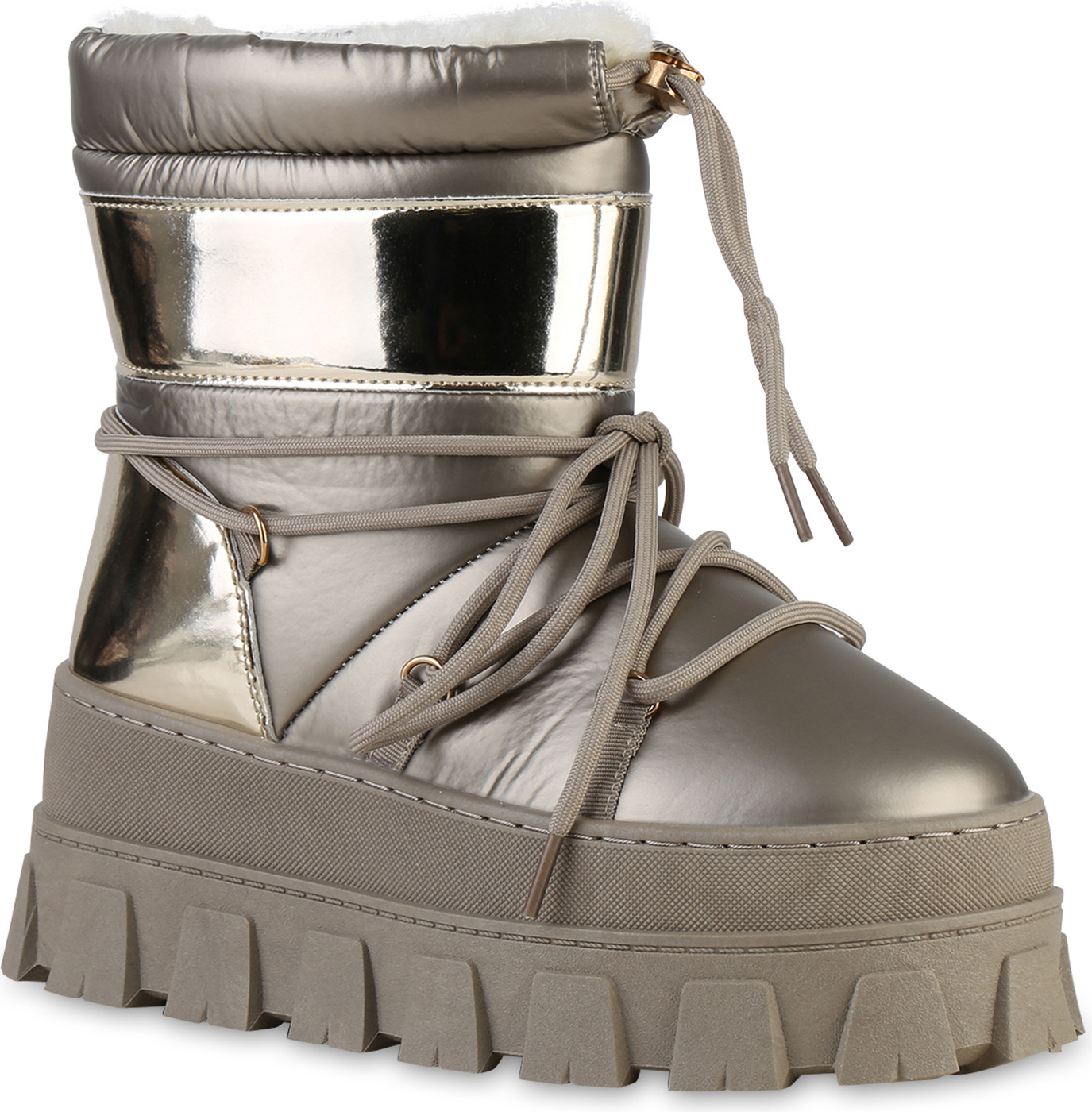 VAN HILL 841395 Winterstiefelette Damen Warm Gefütterte Winter Boots Stiefeletten Bequem Lack (gold)
