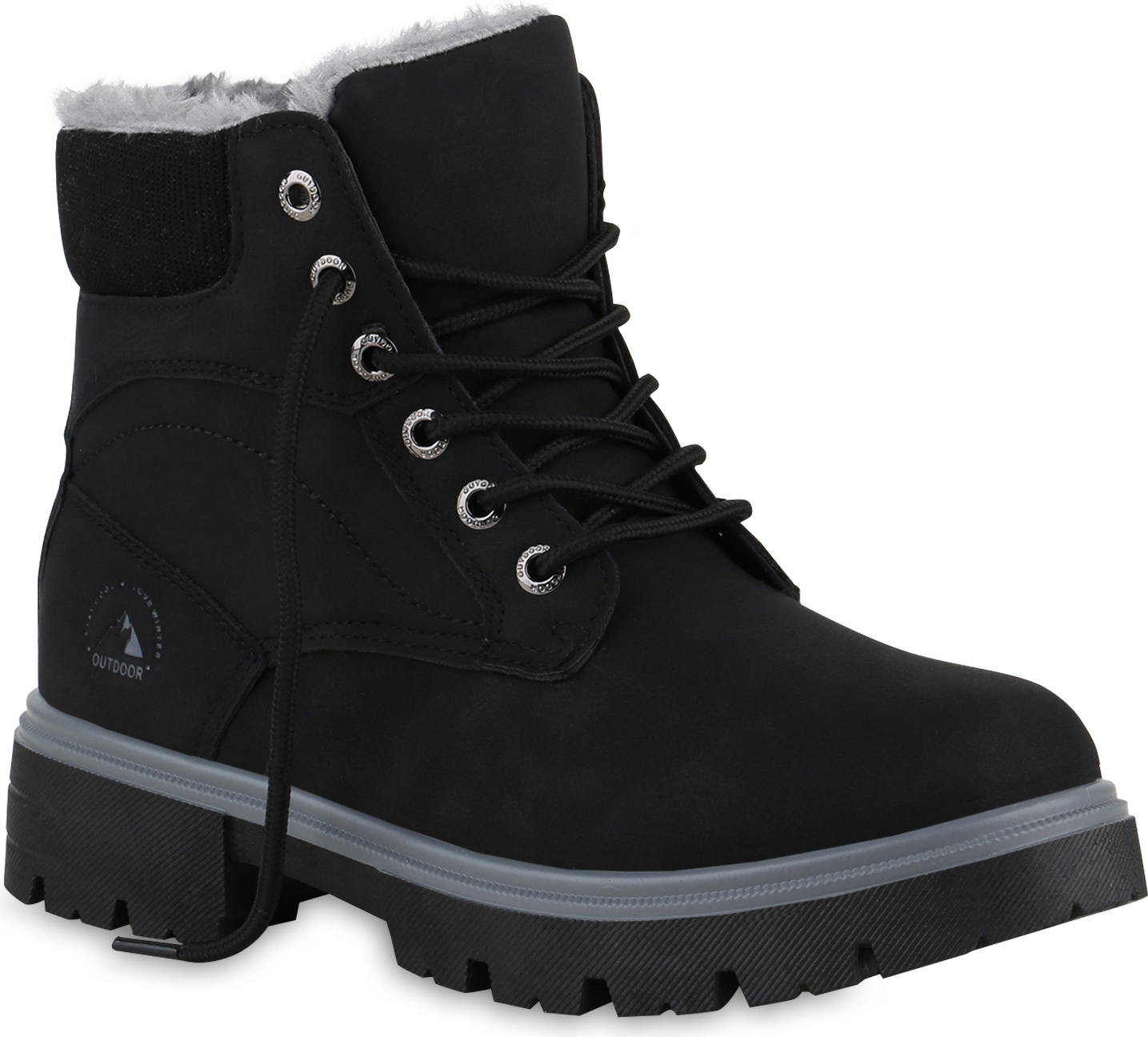VAN HILL 841423 Stiefelette Damen Warm Gefütterte Worker Boots Stiefeletten Bequeme (schwarz)