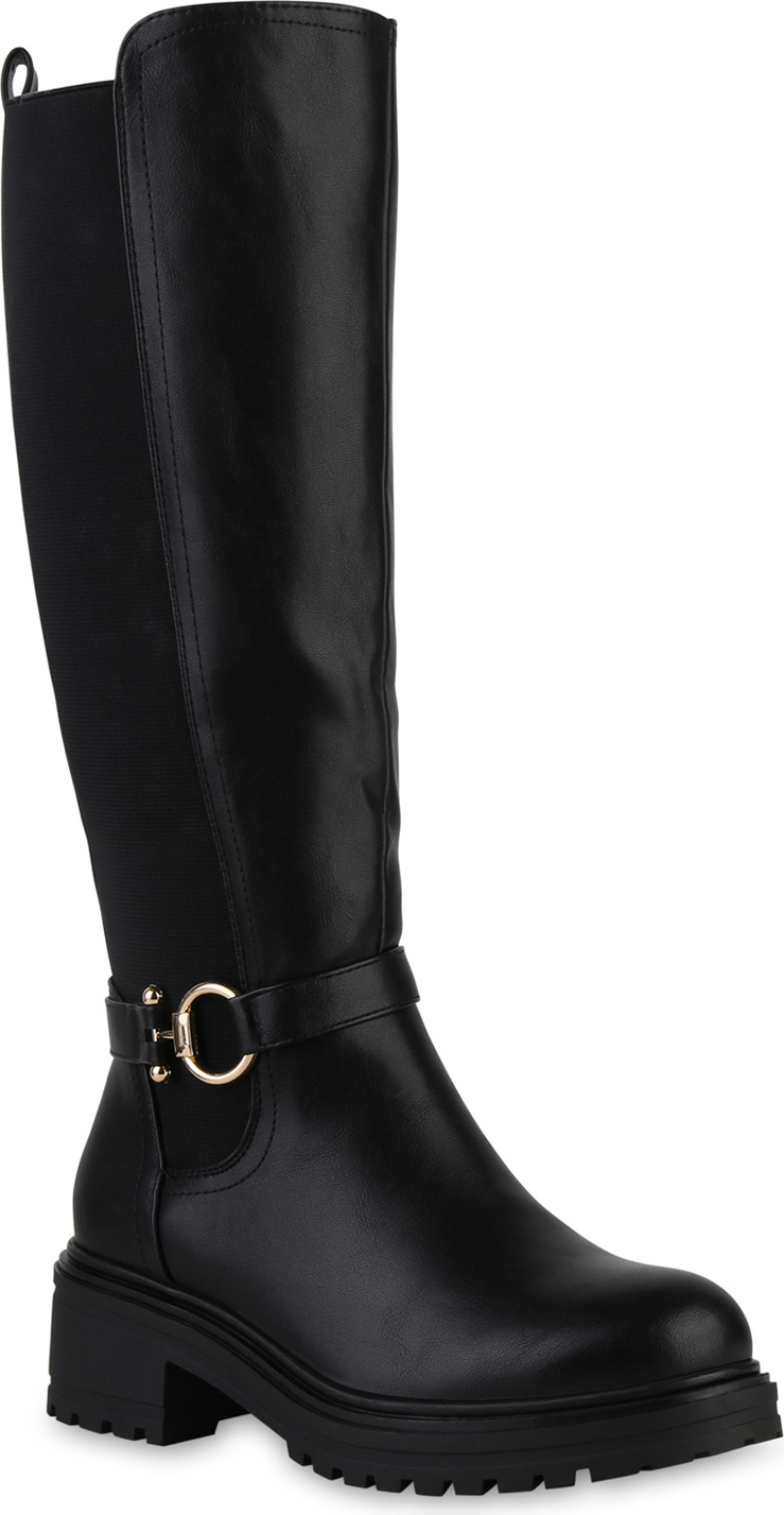 VAN HILL 841442 Stiefel Damen Gefütterte Bikerstiefel Stiefel Profil-Sohle Plateau- (schwarz)