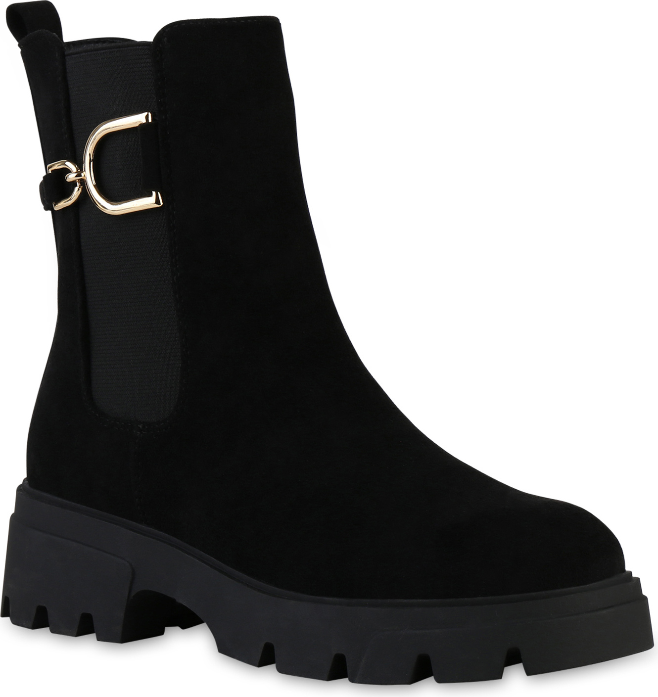 VAN HILL 841445 Stiefelette Damen Leicht Gefüttert Klassische Stiefeletten Profil-Sohle (schwarz)