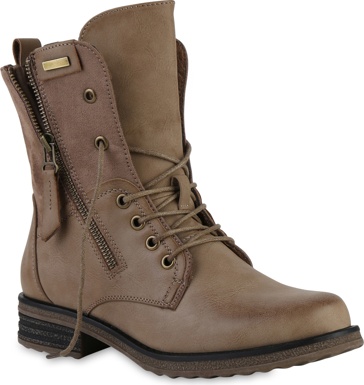 VAN HILL 841451 Schnürstiefelette Damen Leicht Gefüttert Schnürstiefeletten Stiefelette Zipper Schuh