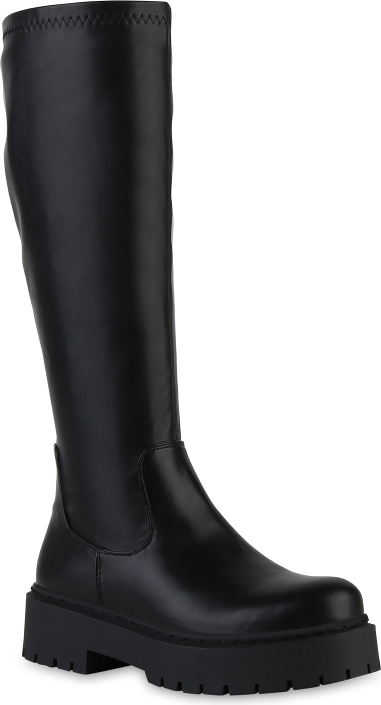 VAN HILL 841464 Plateaustiefel Damen Leicht Gefütterte Plateaustiefel Stiefel Profil-Sohle (schwarz)