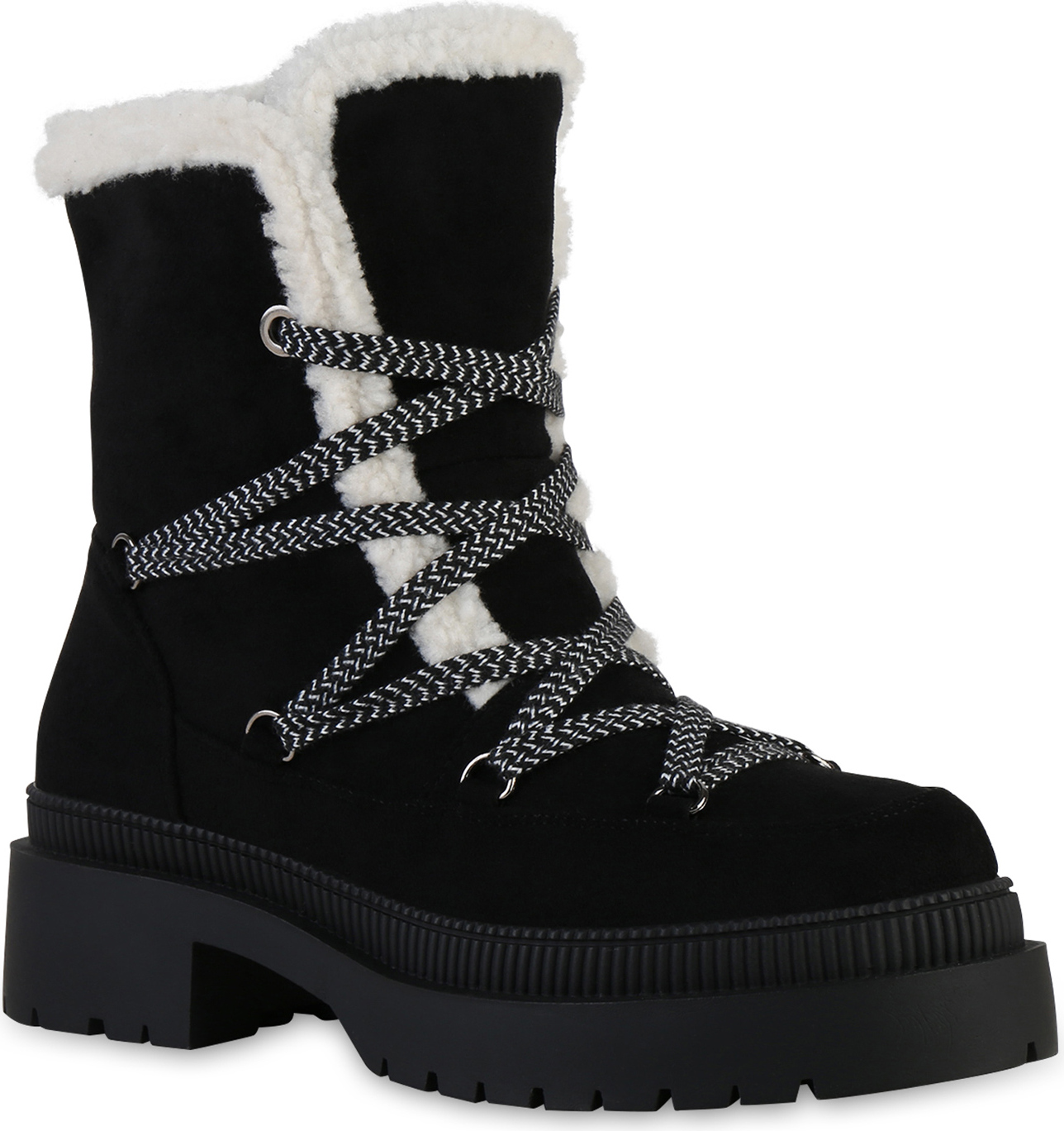 VAN HILL 841472 Schnürstiefelette Damen Leicht Gefüttert Schnürstiefeletten Stiefeletten (schwarz)