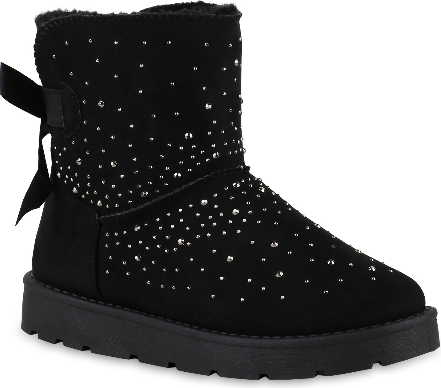 VAN HILL 841504 Winterstiefelette Damen Warm Gefütterte Winter Boots Stiefeletten Bequeme (schwarz/silber)