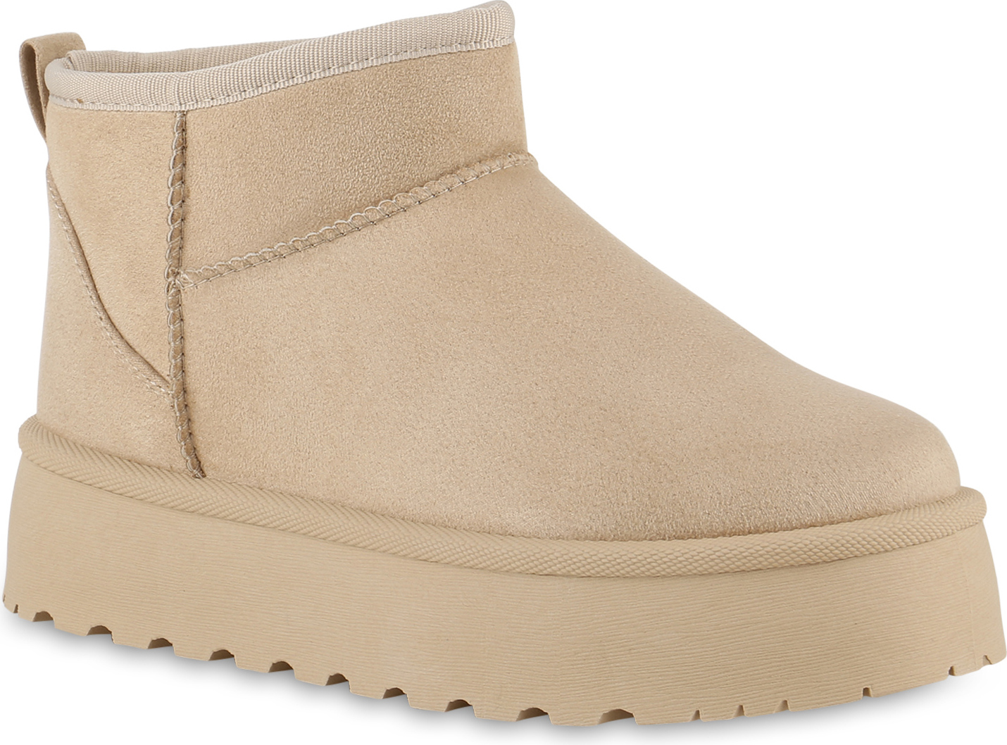 VAN HILL 841506 Winterstiefelette Damen Warm Gefüttert Winter Boots Stiefeletten Profil-Sohle (beige)