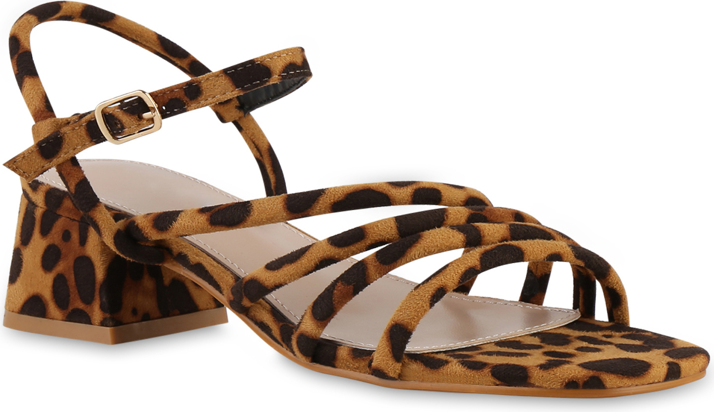 VAN HILL 841525 Riemchensandalette Damen Riemchensandaletten Sandalette Basic Leder-Optik Party Schuh (braun)