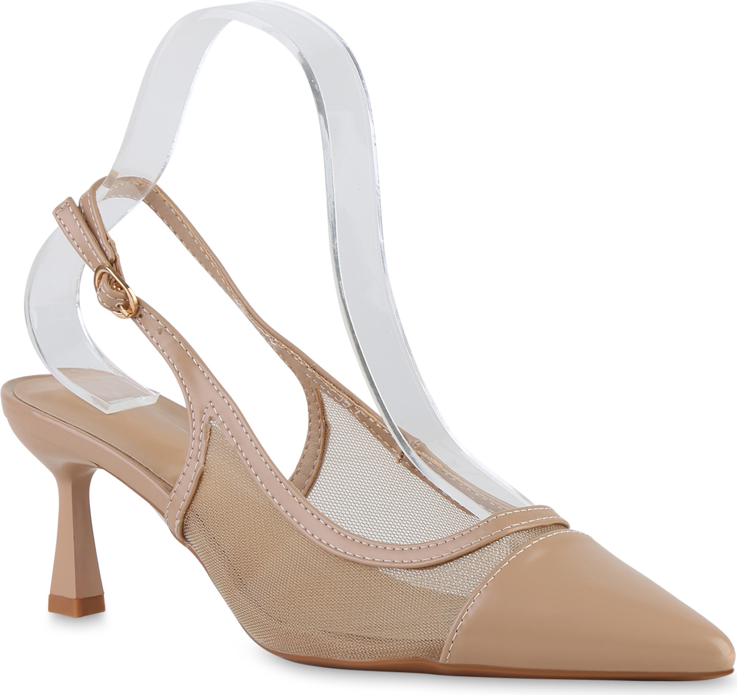 VAN HILL 841533 Slingpumps Damen Slingpumps Pumps Spitze Stiletto Absatzschuhe Basic (grün)
