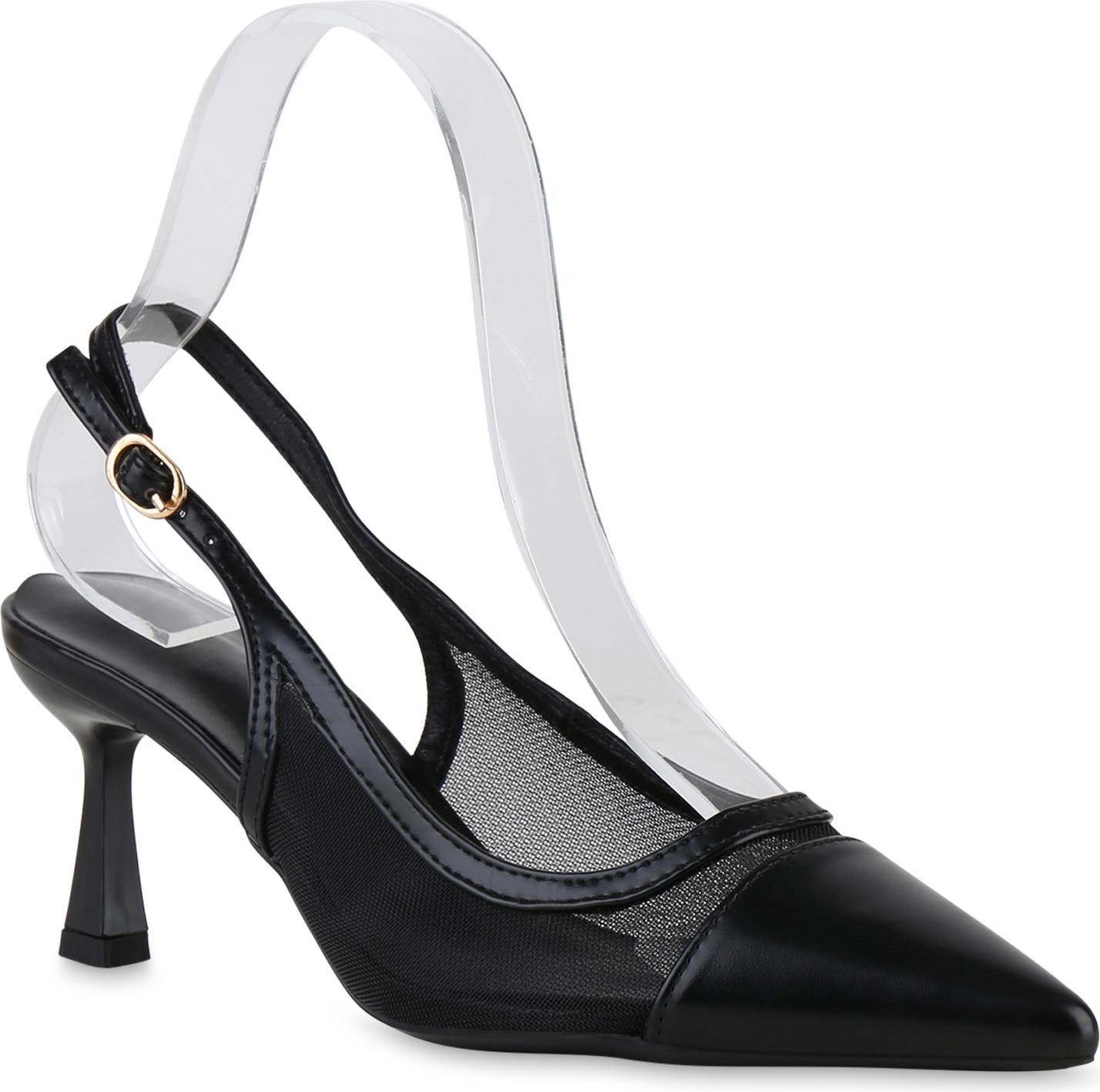 VAN HILL 841533 Slingpumps Damen Slingpumps Pumps Spitze Stiletto Absatzschuhe Basic (schwarz)