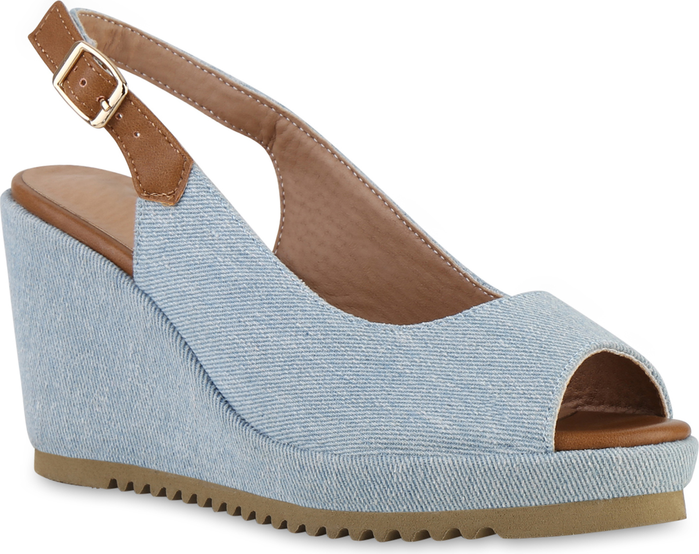 VAN HILL 841550 Keilsandalette Damen Keilsandaletten Sandalette Plateau Vorne Profil-Sohle (blau)