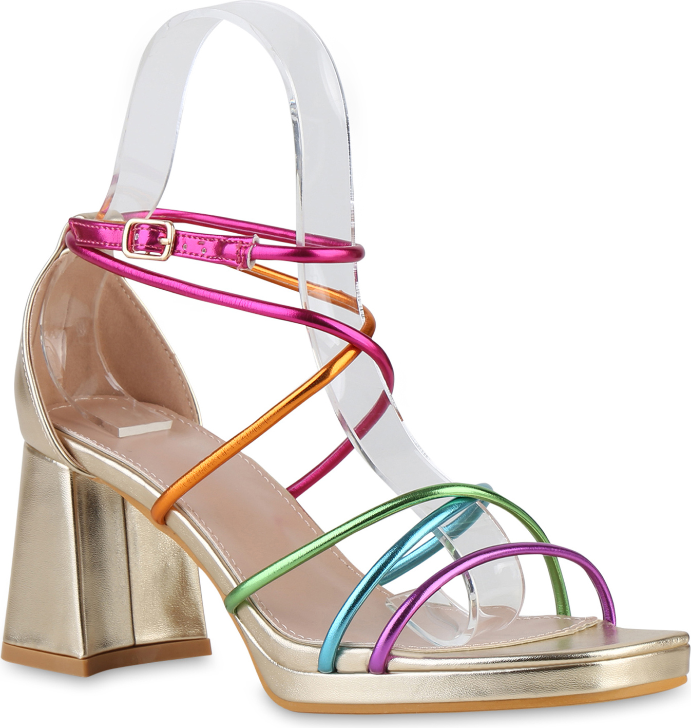 VAN HILL 841569 Riemchensandalette Damen Riemchensandaletten Sandaletten Leder-Optik Plateau- (bunt)